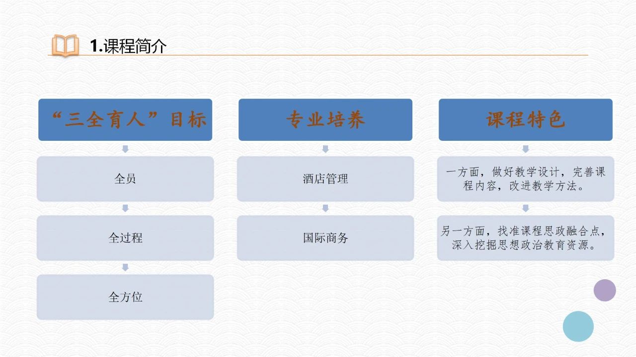 2022年上半年,太阳集团开展了太阳集团tcy8722网站第二批课程思政示范课程申报工作。经各二级学院推荐、校内外专家严格评审,最终评选出第二批课程思政示范课程40门,课程思政建设课程12门。为及时总结经验,发掘典型做法,持续深入抓示范、树标杆,推动形成全面覆盖、类型丰富、层次递进、相互支撑的课程思政内容体系、教学体系、专业体系、培养体系、研究体系和评价体系,进一步巩固课程思政建设成果,方便老师们学习、交流,现将第二批课程思政示范课程说课课件分期进行刊发。