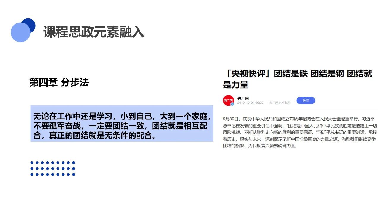 2022年上半年,太阳集团开展了太阳集团tcy8722网站第二批课程思政示范课程申报工作。经各二级学院推荐、校内外专家严格评审,最终评选出第二批课程思政示范课程40门,课程思政建设课程12门。为及时总结经验,发掘典型做法,持续深入抓示范、树标杆,推动形成全面覆盖、类型丰富、层次递进、相互支撑的课程思政内容体系、教学体系、专业体系、培养体系、研究体系和评价体系,进一步巩固课程思政建设成果,方便老师们学习、交流,现将第二批课程思政示范课程说课课件分期进行刊发。