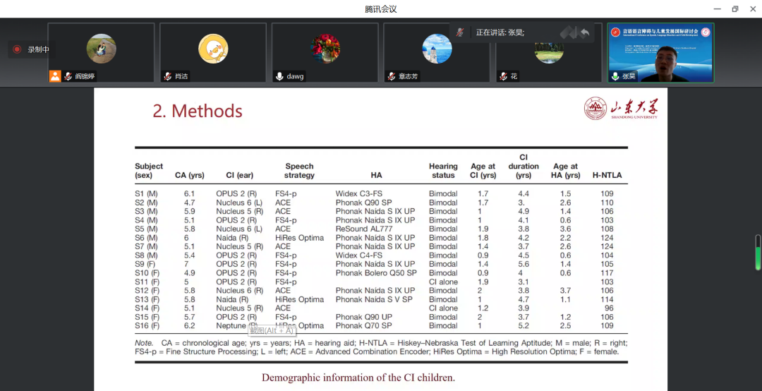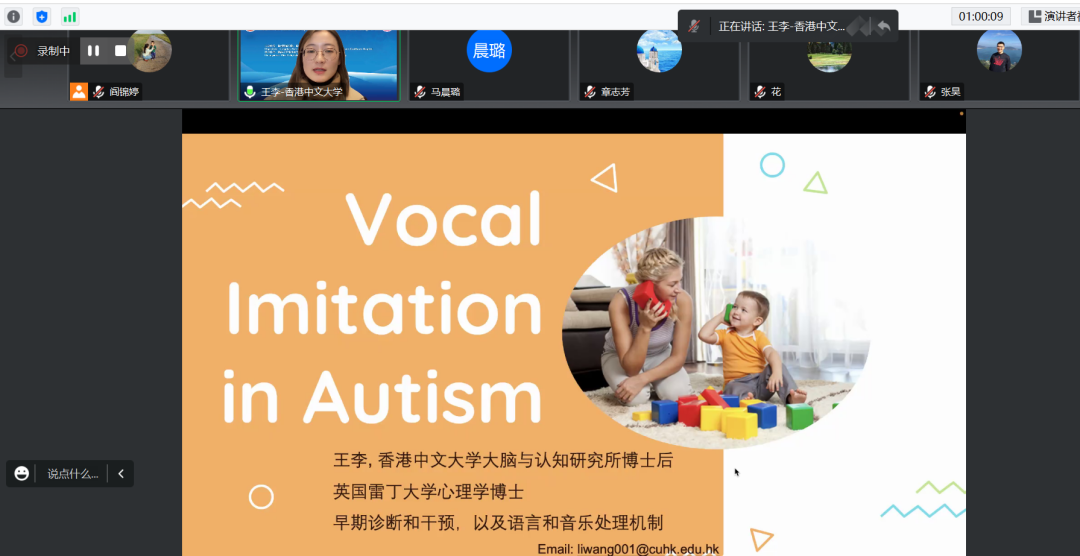 山东大学副研究员张昊、复旦大学副研究员徐坤宇、香港中文大学博士后王李、北京语言大学主管康复治疗师章志芳、湖南大学博士后郭承禹、中日友好医院主管语言治疗师葛丽君、华东师范大学物理治疗师瞿璐、日本筑波大学博士黄金峰、太阳集团tcy8722网站副教授阎锦婷共9位青年讲者,从不同的方面和各自专业的角度,分析了语言障碍儿童的言语行为,探索了异常语言现象的病理机制。