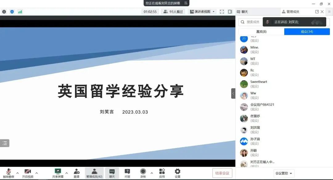 齐越传媒学院刘笑言老师为同学们带来精彩的英国留学经验分享。刘老师向同学们介绍了英国的校园环境、实践活动、休闲娱乐和大学排名等方面内容,帮助同学们拓展国际视野,锻炼自身思维。庞泽祥老师结合自身经历,为同学们提供了香港、澳门学校的最新信息,还进一步讲解了海外升硕具体的申请方法,为同学们的梦想继续前行助一臂之力。