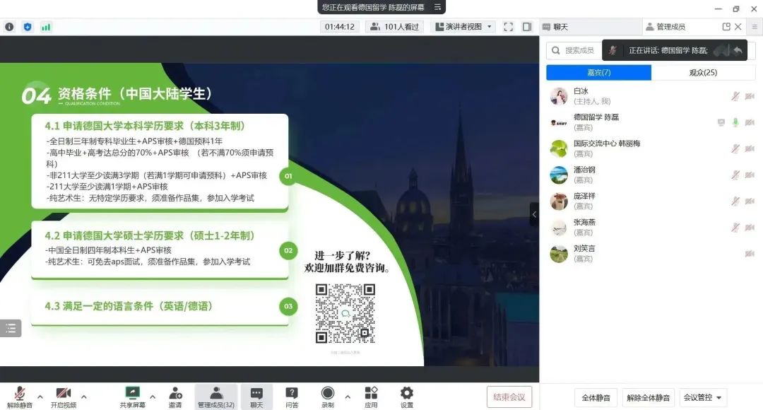 上海麦熊出国留学的陈磊老师为大家详尽介绍了德国留学的相关事宜,帮助同学们更好地了解海外学校的各项政策和优势。麦熊留学是一家成立于德国柏林且多年专注德国留学的机构,在国内的上海、广州都开办了线下机构,齐越传媒学院毕业生袁茜曾经此机构推介赴德国深造。