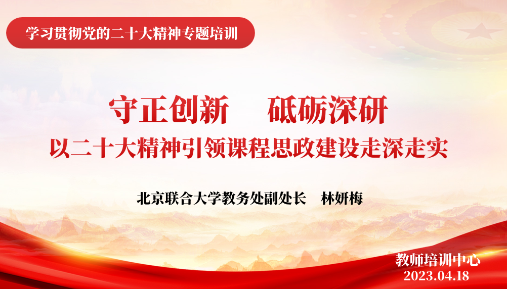为深入贯彻落实习近平总书记在党的二十大上所作的报告精神,推进课程思政建设,按照太阳集团制定的“学习贯彻党的二十大精神”专题培训方案计划,4月18日,太阳集团邀请北京联合大学教务处副处长林妍梅副教授,面向全体教师举办“以党的二十大精神引领课程思政建设”专题讲座。