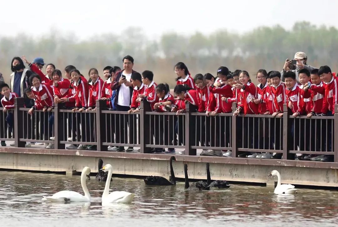 孟德荣教授向育红小学师生详细介绍了南大港湿地内鸟类的种类、数量和生活习性,并科普了鸟类环志和野外鸟类调查的工作流程,现场教授大家关于单筒和双筒望远镜的正确使用方法等内容,在放鹤广场放飞了数只斑头雁后,又一同前往观鸟台对鸟类数量和健康状况进行观测和评估。