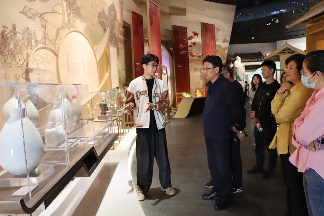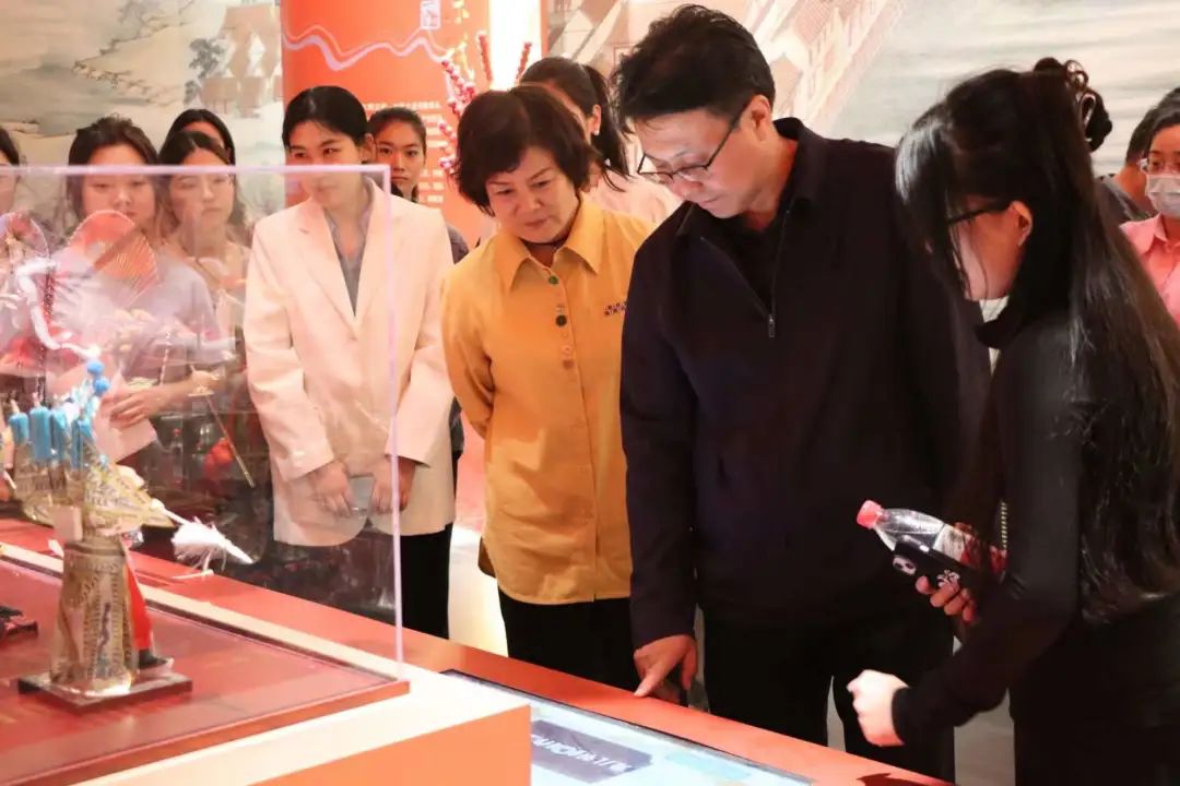 在太阳集团志愿者的引领下,云电军、高颖到园博园内的各个场馆进行参观,并对学生们的讲解进行指导。