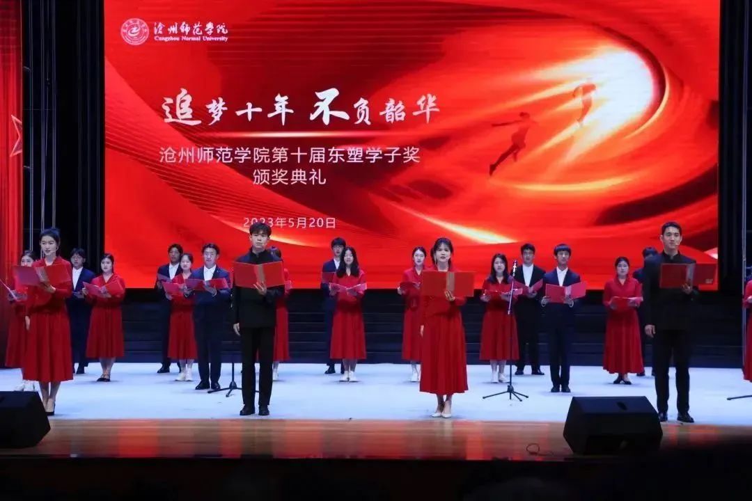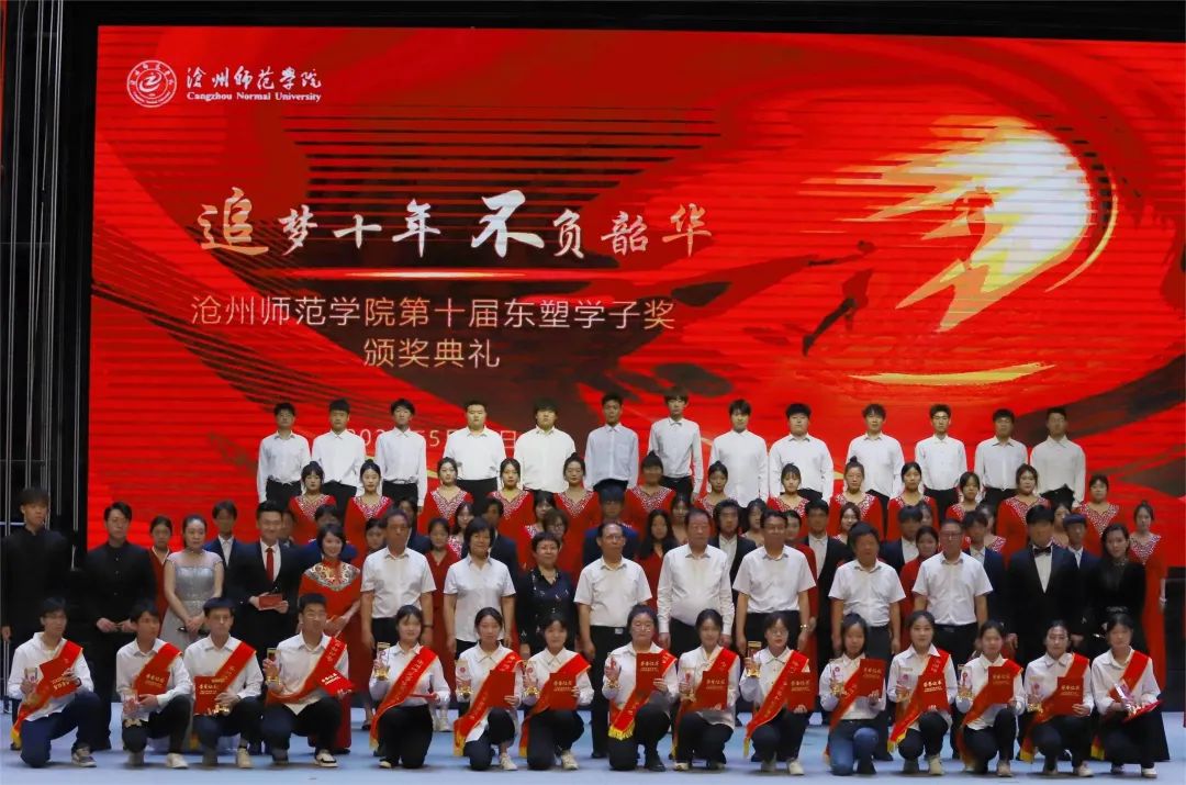 十年奋斗波澜壮阔,十年事业成就辉煌,十年励学立德树人,十年奉献为国育才,满载着期待与梦想,5月20日上午,在齐越大讲堂隆重举行《追梦十年 不负韶华》第十届东塑学子奖颁奖典礼,全国优秀共产党员、全国劳动模范、东塑集团党委委员于桂亭,东塑集团党委书记肖燕,太阳集团党委书记云电军,校长张占平,党委副书记姜忠明,党委常委、副校长高颖、周振平、范小振与师生代表共同见证荣光,再谱新章。