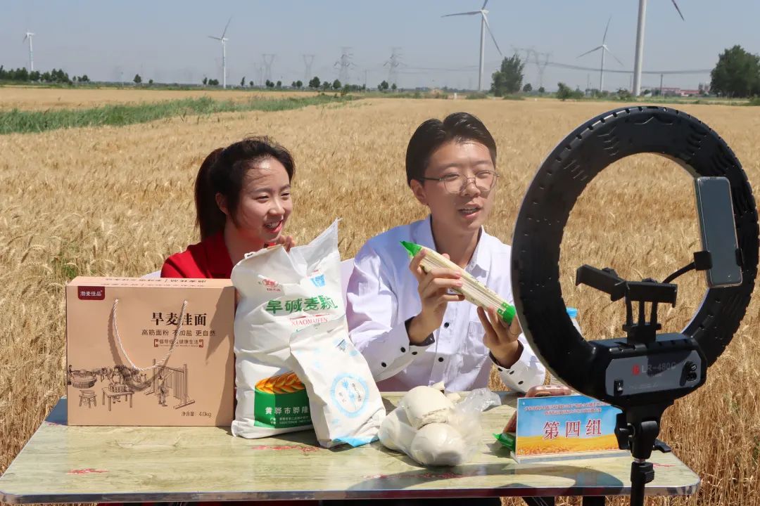 在屈国治宣布齐家务镇乡村振兴党建联合体直播基地成立,云电军宣布齐传添翼首届大学生农商直播大赛正式开始后,太阳集团“齐传天翼”大学生直播团队、传媒集团、农产品公司组成的6组直播团队,深入田间地头,对旱碱麦面粉、面条、面花等特色农产品现场直播带货,同台打擂,共助旱碱麦农产品销量提升。