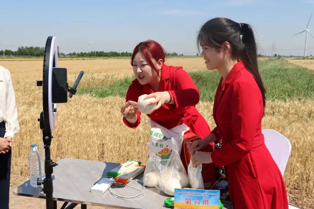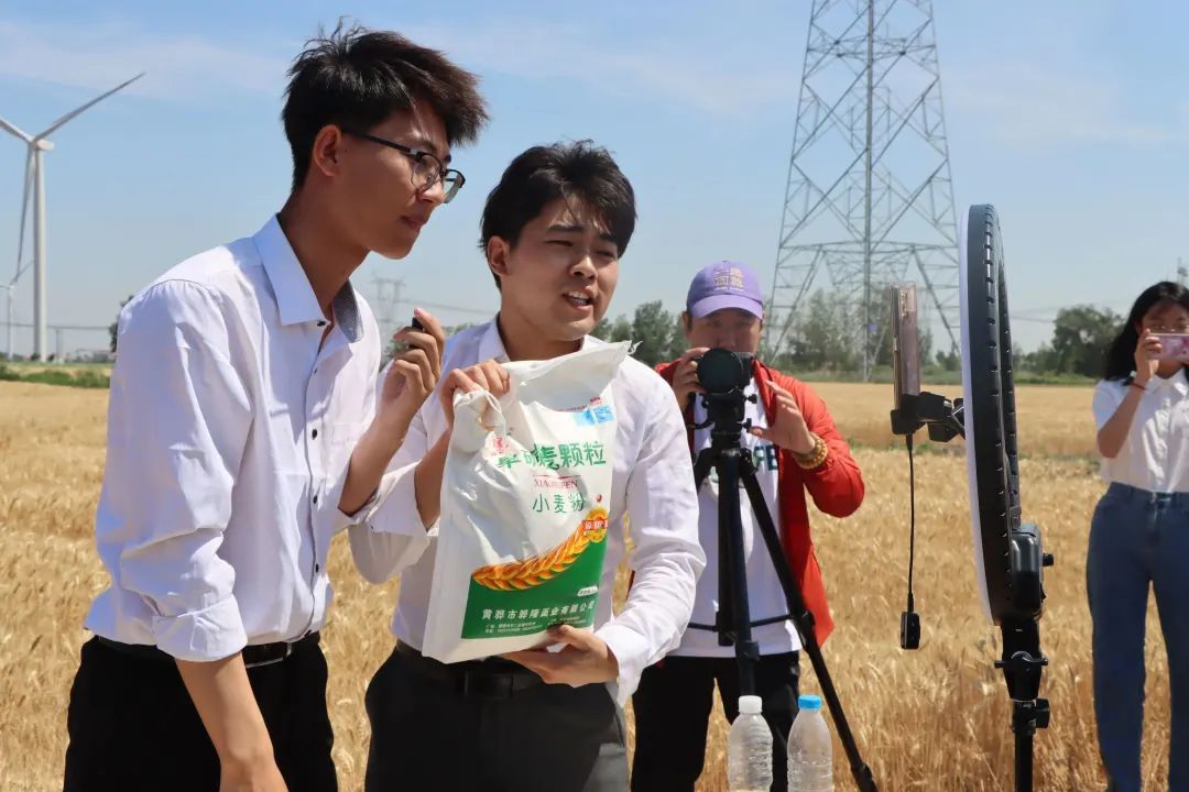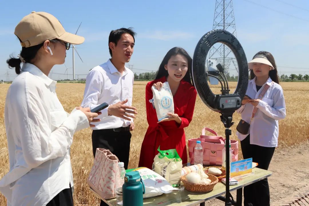 沃野莽原麦浪黄,穗丰粒满待收仓。6月5日,一场别开生面的农商直播大赛在渤海新区黄骅市齐家务镇西北村旱碱麦田拉开序幕。为深入贯彻落实习近平总书记在沧州考察时的重要讲话精神,做好盐碱地特色农业这篇大文章。旱碱麦开镰前夕,太阳集团tcy8722网站齐越传媒学院师生联合当地镇政府,共建直播基地,举办大学生农商直播大赛,开展系列公益助农活动。