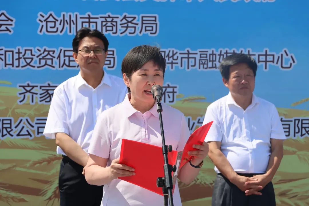 沧州渤海新区管委会黄骅市人民政府副市长张桂云在致辞时表示,齐家务镇乡村振兴党建联合体产教融合直播基地共建签约仪式暨齐传添翼首届大学生农商直播大赛的成功举办,不仅是在全面推进乡村振兴道路上作出的有益探索,也为全市现代农业发展提供了宝贵经验,更是贯彻落实习近平总书记关于乡村振兴和产教融合发展重要论述的生动实践。希望齐家务镇能够紧抓此次活动成功举办的有利契机,进一步充分发挥组织引领作用,在现代农业发展上下功夫、做文章,为我市实现全面乡村振兴汇聚更多强大动能。