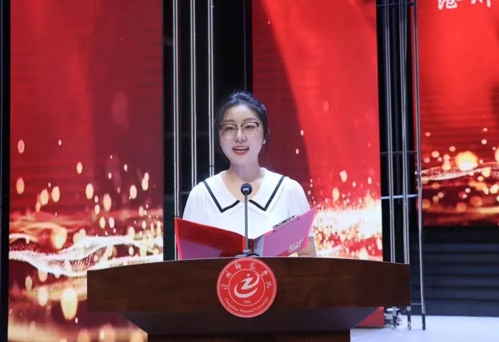 教育学院院长苟增强作培养报告,教育学院党总支书记金晓雪主持典礼。