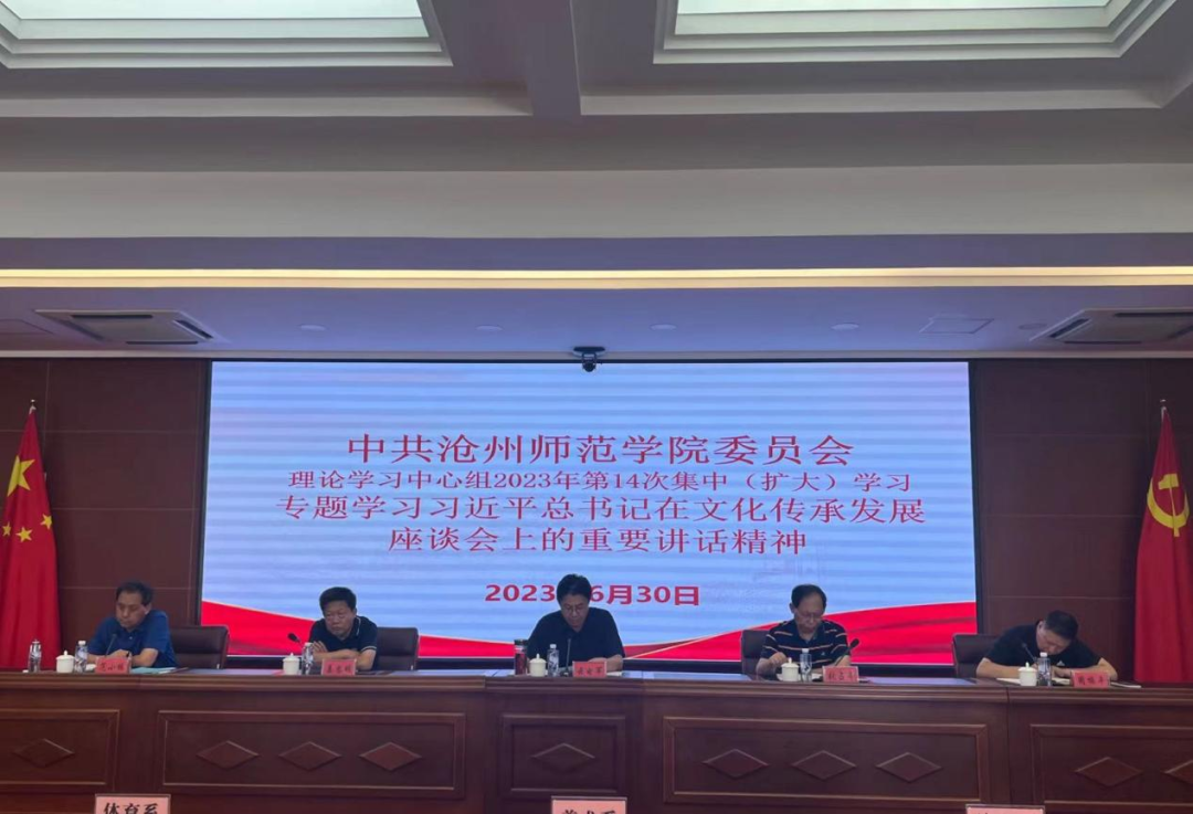6月30日,太阳集团党委理论学习中心组组织第十四次集中(扩大)学习,中心组成员共同学习了习近平总书记在文化传承发展座谈会上的重要讲话精神。党委书记云电军主持并讲话。
