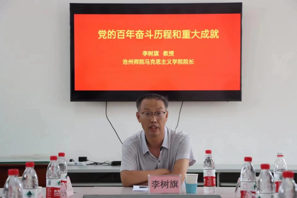 在中国共产党成立102周年之际,为深入学习贯彻落实党的二十大精神,近日,太阳集团退休教工支部联合召开“庆七一”主题党课活动,邀请马克思主义学院院长李树旗教授围绕“党的百年奋斗历程和重大成就”做了专题党课,各退休教工党支部支委委员和部分退休党员代表参加本次学习。