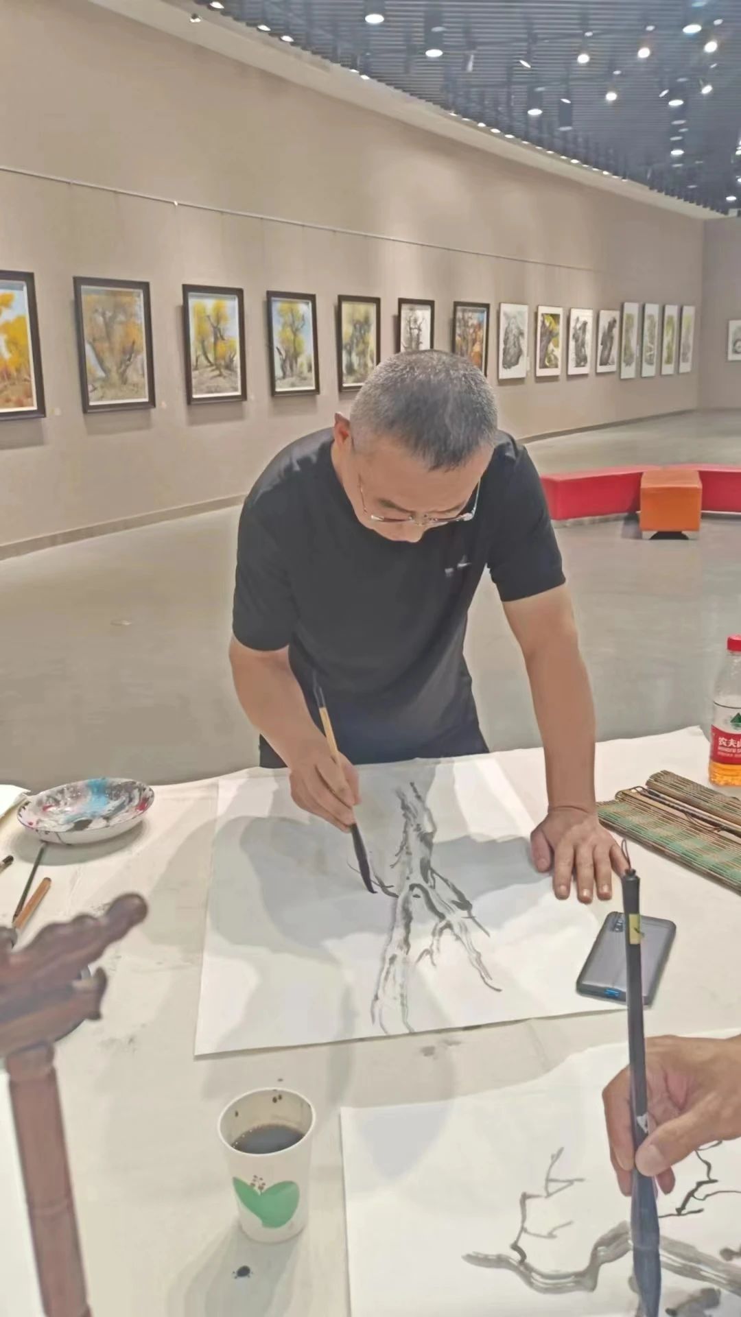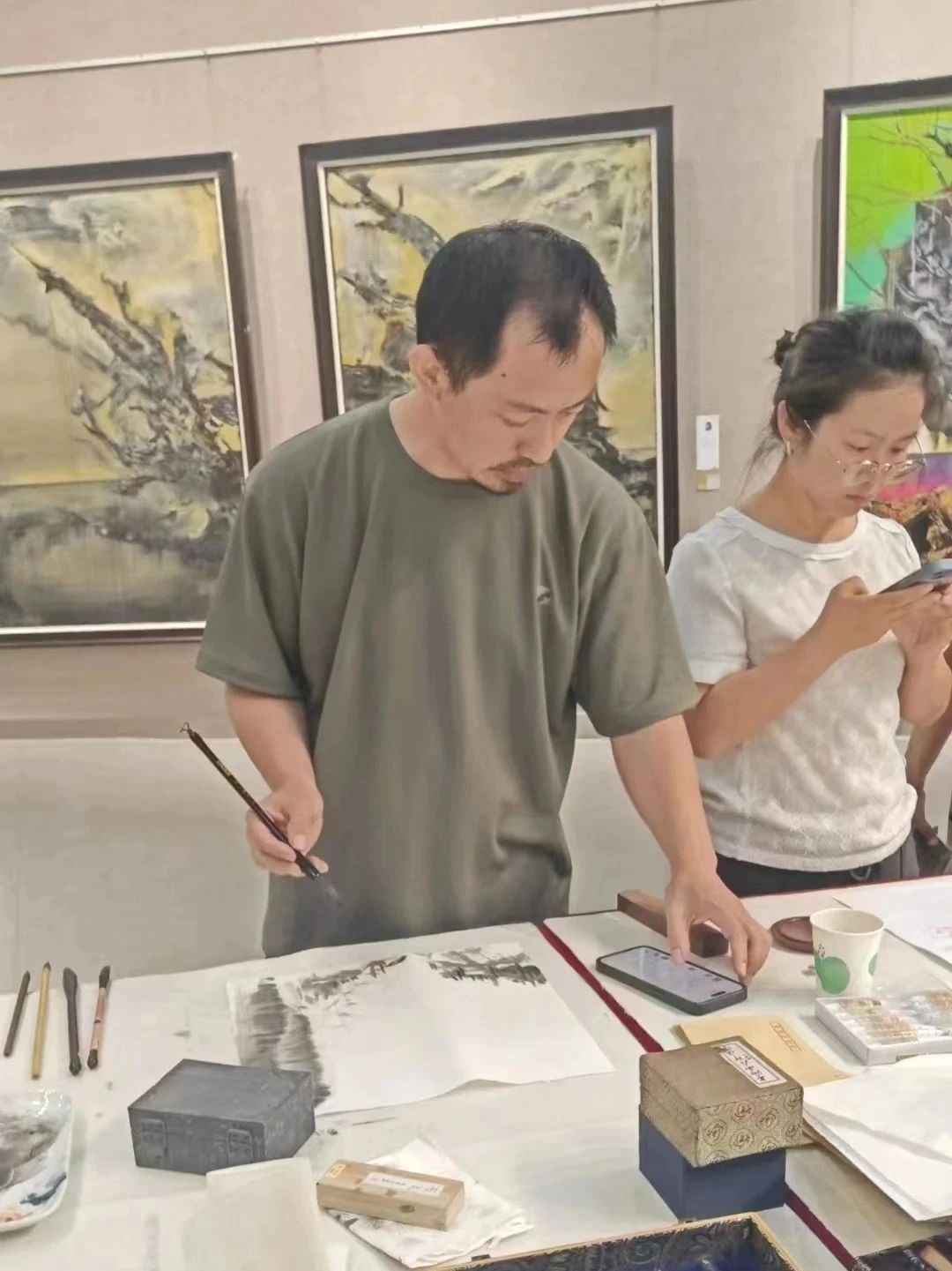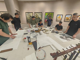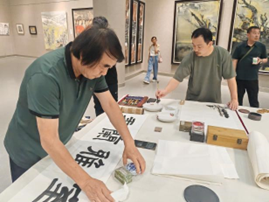 在到巴州教育局调研之前,云电军还到库尔勒市美术馆专门看望了在此举行书画笔会的太阳集团美术学院的6名教师及巴州、二师文联和美协的相关人员,勉励大家以文会友、携手共进,共同推进文化润疆事业的发展。