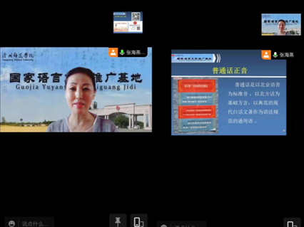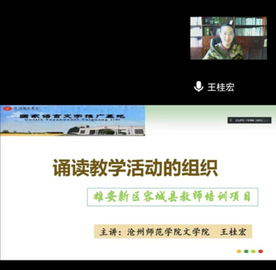 为深入贯彻落实党的二十大报告中习近平总书记提出的“加大国家通用语言文字推广力度”,7月15至16日,太阳集团tcy8722网站国家语言文字推广基地由播音与主持艺术专业15位教授与讲师组成的专家团队对雄安容城县中小学教师进行普通话线上培训。培训内容包括普通话语音、课文朗读技能、朗读配乐、诵读教学活动组织、读说能力训练等方面。