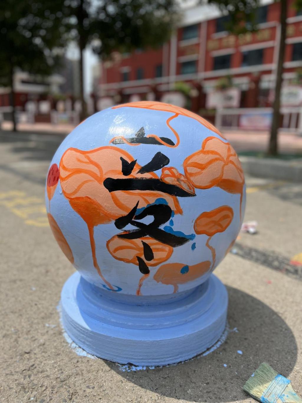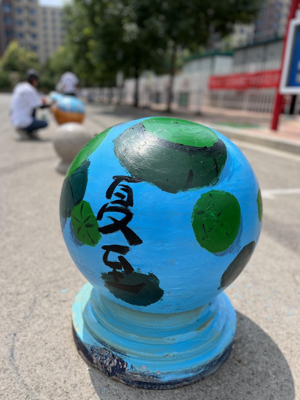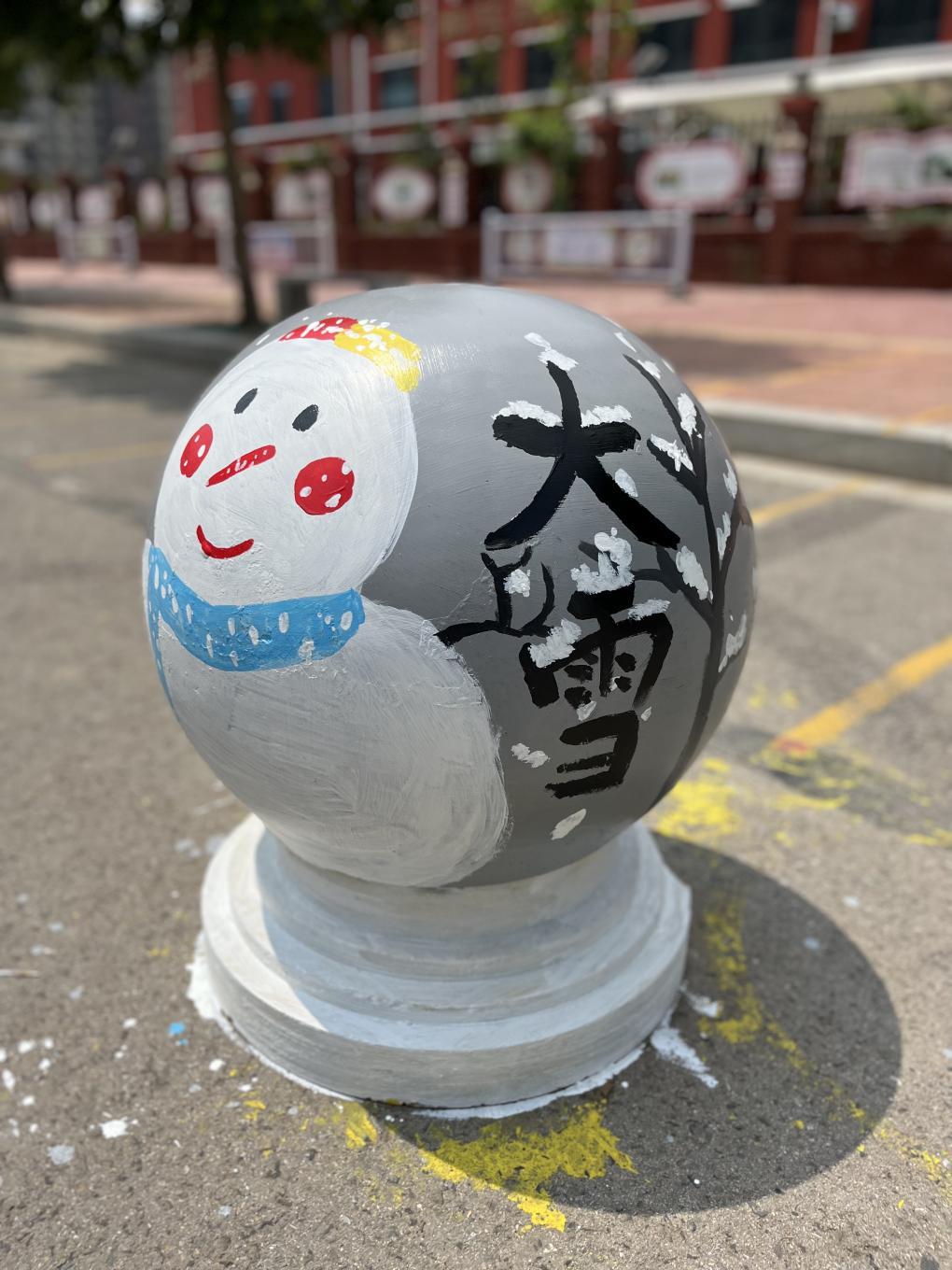在勘察过现场后,实践队志愿者们积极构思,最终敲定在石墩上绘画,主题为“二十四节气”。在曾凡超的指导下,大家认真勾画出画面比例和位置,认真细致地设计绘画内容。炎炎烈日,志愿者们不辞辛苦,不惧骄阳,依然仔细描绘,全身心投入,相互配合,一幅幅生动精美、栩栩如生的作品逐步展现。