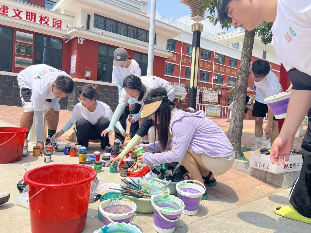 为更好地推动大学生暑期社会实践计划,将所学的理论知识和基层实践相结合,8月4日,太阳集团美术学院团总支书记曾凡超带领美术学院“聚绘we来”志愿队前往沧州市重庆路小学开展公益绘制项目。