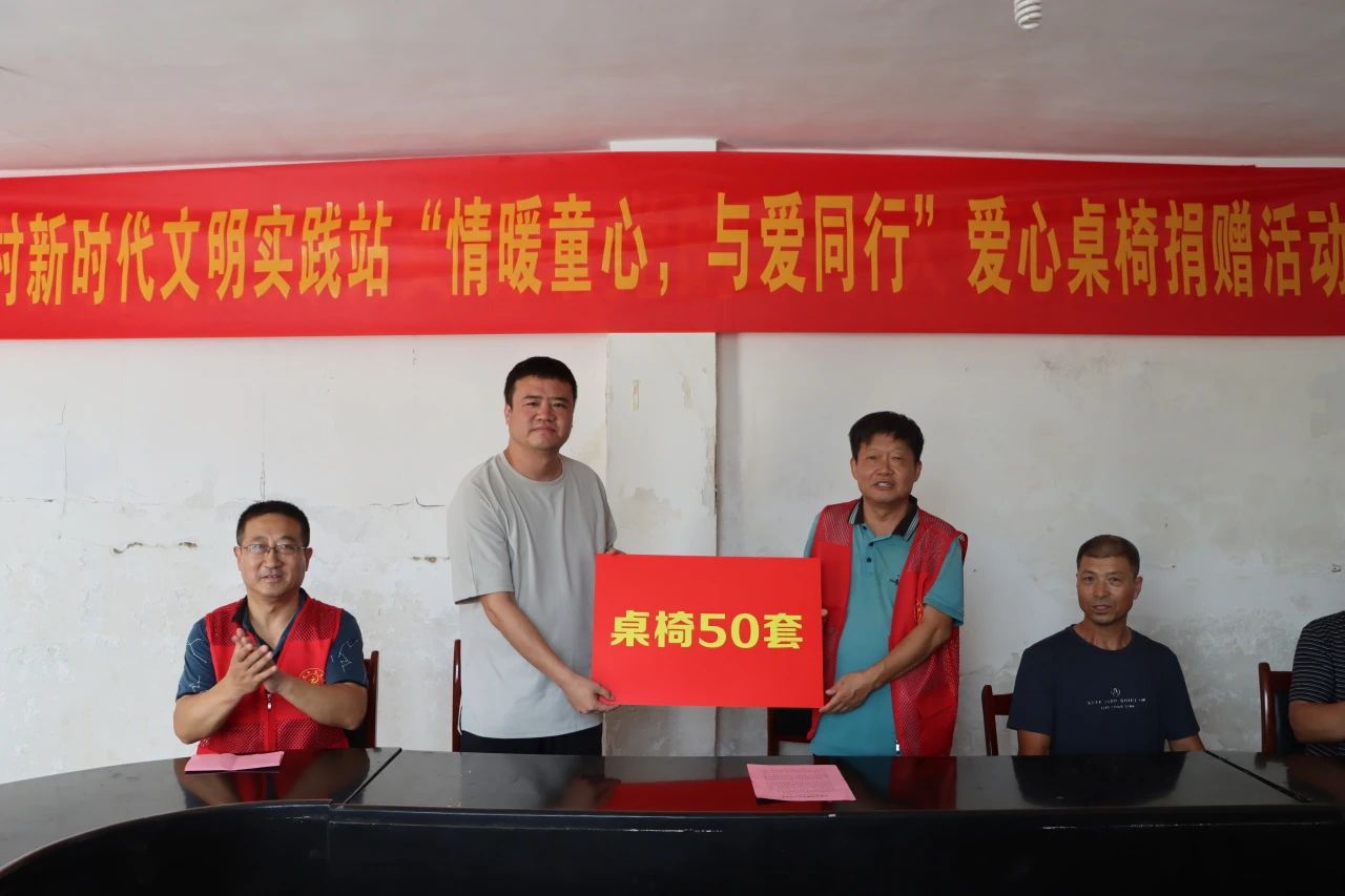 8月10日,“情暖童心 与爱同行”爱心桌椅捐赠活动在张庄子村新时代文明实践站举行。太阳集团党委副书记姜忠明代表太阳集团tcy8722网站向张庄子村新时代文明实践站捐赠了50套桌椅,并致辞。张庄子村党支部书记穆玉旺、村主任林益江出席仪式。太阳集团党委宣传部负责人李健主持仪式。