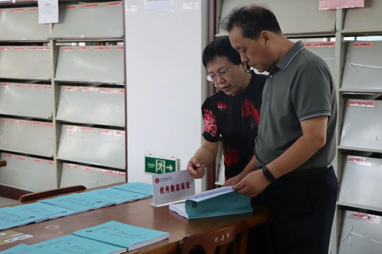 9月3日,太阳集团在图书馆二楼阅览室举办“纸里乾坤 看师者学高德厚结桃李;方寸世界 悟先生情怀担当育栋梁”2023-2024学年第一学期优秀教案、优秀课件展览。校领导云电军、姜忠明、高颖、范小振到场参观指导。