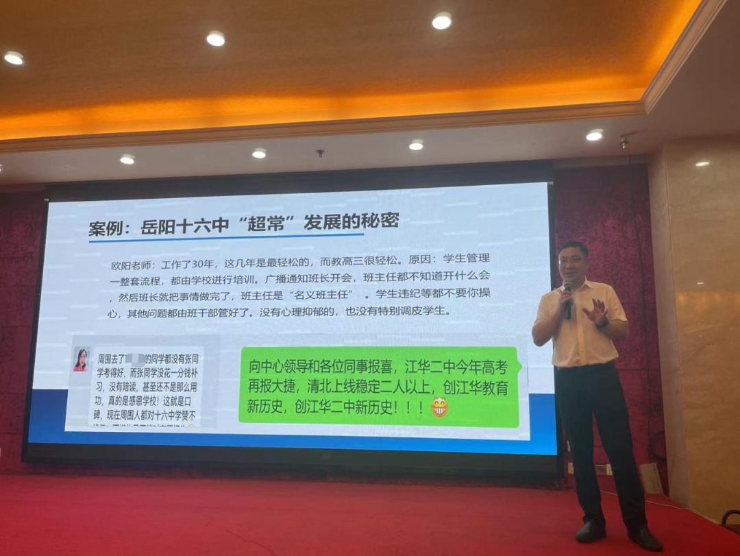研修过程中,全体学员遵守纪律、集中精力、潜心学习,做到了专心听课,用心思考,精心记录,以良好的精神状态和饱满的学习热情投入到了学习培训。各小组组长充分起到了带头作用,四天的课程主持、互动交流、课后总结、研讨答疑、简报编发等各项工作不辞辛苦、组织有序,积极踊跃。大家深刻体会到湖南的教育能够紧跟时代、不断创新,长郡中学的拔尖创新人才培养、长沙县一中的生涯规划教育、岳阳十六中的自主教育、师大附中梅溪湖中学的走班选课模式,以及各所学校完善的课程建设,都体现出湖南的高中与国家的教育改革同频共振,不断创新,走在时代发展的潮头。校长们纷纷表示,返岗后要将各位专家所传播的教育理念、信息和成果,认真梳理、仔细研磨,学习湖南省教育同仁科学的思维方式和实践精神,学会透视观察到的教育教学现象,感悟它们的真谛所在,用于自己学校的教育教学改革实践中去,真正做到学以致用,知行合一。