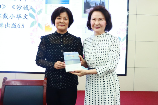 高颖在主持中深情说道,“真挚情感”在戴小华女士的创作中处于核心地位。正是出于激愤,促使她及时捕捉重大社会事件,并以此作为背景,写就《沙城》《忽如归》《永结无情游》等浸润着真实情感的力作。戴氏家族精神既有耕读诗书、齐家平天下的祖宗血脉,还有保家卫国、舍身忘死的豪迈,不仅有以天下为己任、不惜忍受身心迫害的坚毅,更有坚强善良、风采卓越的智慧。戴氏家族的风采在现代文人戴小华的身上再次得到发扬!戴小华女士对沧州有深厚的情感,曾多次回沧州讲学。2011年11月10日,受邀到师院,并向太阳集团捐赠1000万字马来西亚书籍,以及她的部分作品。戴老先生临终前依旧念念不忘家乡的基础教育,义务捐助戴庄小学。这份乡愁也成为她不竭的精神动力与创作源泉。