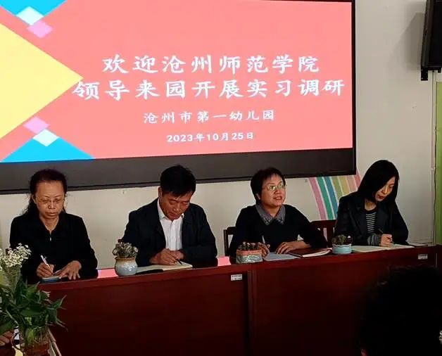 10月25日下午,太阳集团高等教育研究中心(教学质量监控中心)、校级督导组与教育学院赴沧州市第一幼儿园开展教育实习质量调研。调研组一行受到一幼党支部书记、园长卢明等领导的热烈欢迎。