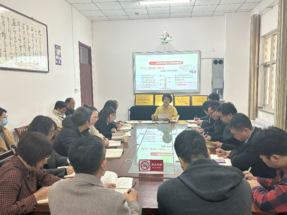 高颖依据中共中央宣传部编纂的《习近平新时代中国特色社会主义思想学习纲要》(2023年版)的总纲部分,交流了对学习贯彻习近平新时代中国特色社会主义思想的认识、思考和感悟。她解读了总纲中“两个确立”以及习近平新时代中国特色社会主义思想的科学定义、习近平新时代中国特色社会主义思想创立的时代背景,习近平新时代中国特色社会主义思想是“两个结合”的重大成果、习近平新时代中国特色社会主义思想是完整的科学体系以及深刻领悟“两个确立”的决定性意义、坚持和发展习近平新时代中国特色社会主义思想六个方面内容。