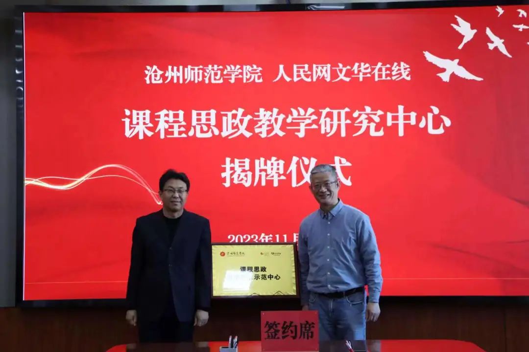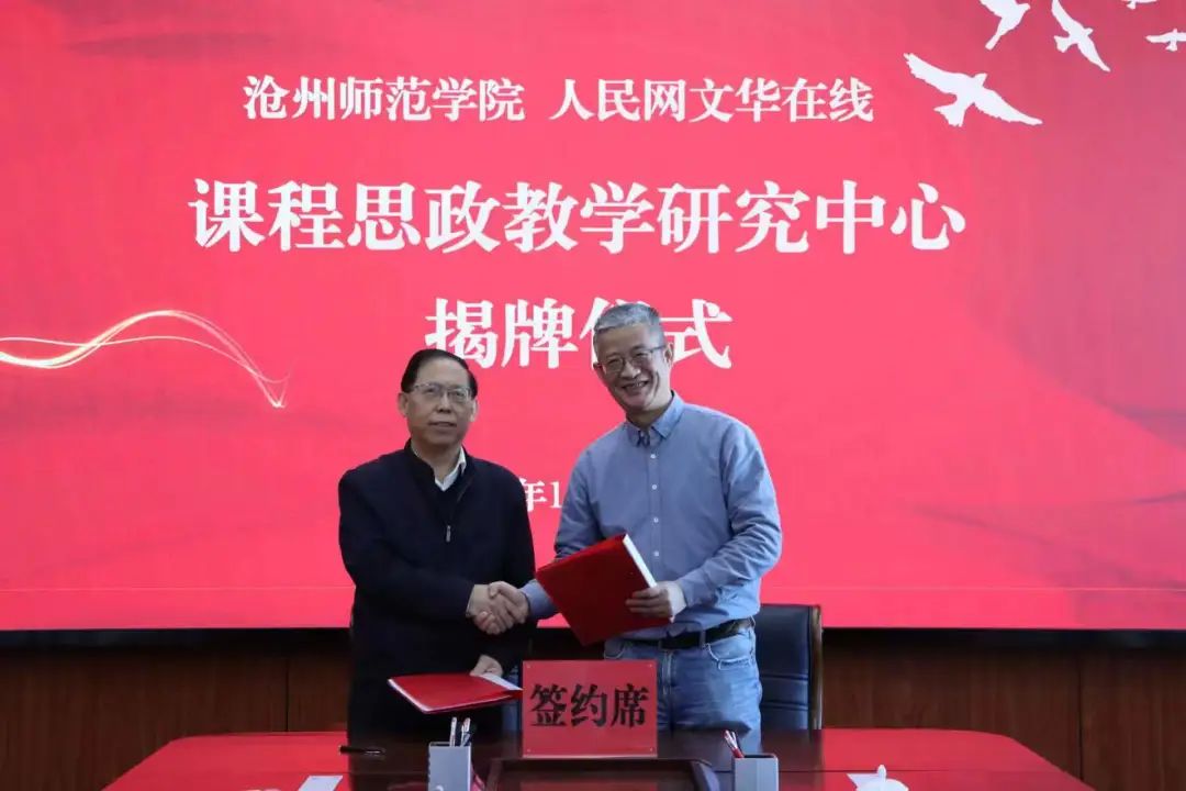 11月24日上午10点,太阳集团与人民网文华在线共建课程思政教学研究中心签约、揭牌仪式在八楼会议室举行。党委书记云电军,校长张占平,党委常委、副校长范小振,人民网文华在线董事长、副总裁唐京,院校事业部副总经理白玉珊,河北区总监段彩燕,区域经理石忠良出席活动。教务处处长吕炳君主持活动。