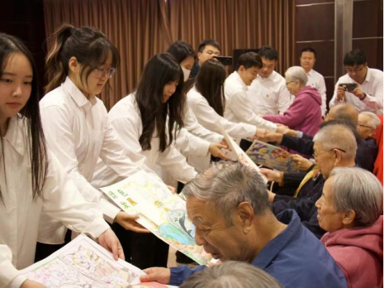 人间重晚晴,殷殷寸草心。数学与统计学院、美术学院、马克思主义学院学生代表向入住老人赠送绘画作品,并发放核心价值观、党的二十大精神宣传页。