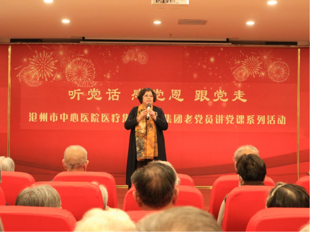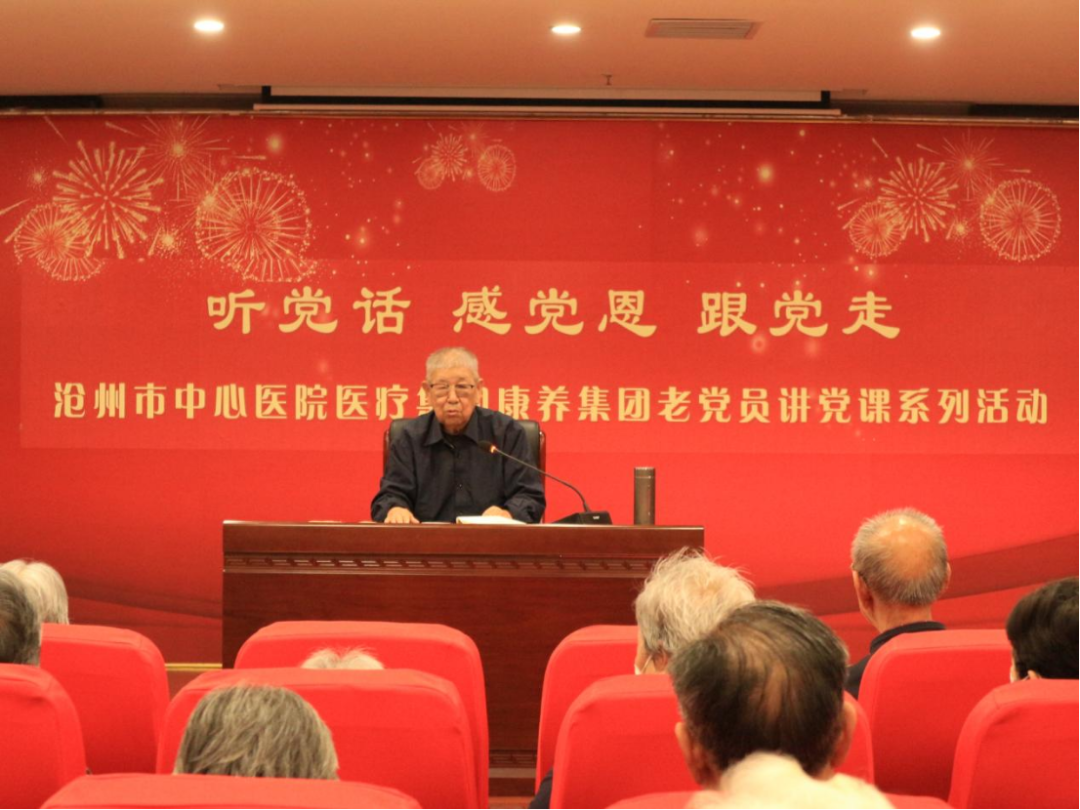 沧州市中心医院医疗集团康养集团董事长温秀玲在致辞中表示,康养集团“红色星期一”老党员讲党课活动目前已举办了十四期,彰显了老党员对党的热爱和忠诚,激发了老党员发挥余热的初心和情怀。希望同学们和全体干部职工能够认真聆听党课、深学悟透,将老党员退休不褪色、离岗不离党的精神转花为学习和工作的动力。