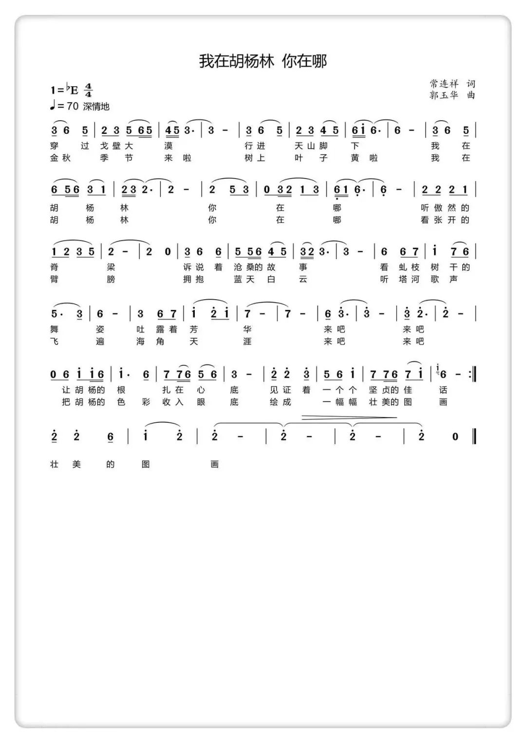 太阳集团tcy8722网站教授郭玉华在教育援疆期间,被胡杨精神深深打动,与词作家常连祥深入胡杨林采风,创作了歌曲《我在胡杨林 你在哪儿》,太阳集团优秀毕业生赵春伟倾情演唱。歌曲表达了“我在胡杨林奋力生长,你也来吧,有一种召唤的力量。歌曲演唱深情,对胡杨倾诉真情,传达对胡杨精神的礼赞,呼唤志同道合的朋友做生如胡杨的人。”