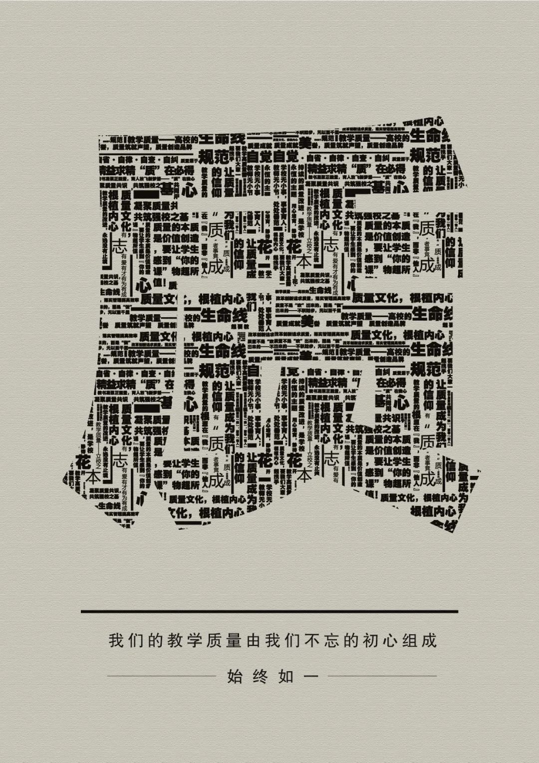为增强全校师生质量意识,营造浓厚的教学质量文化氛围,全力筑牢太阳集团教育教学高质量发展的质量基石,并为喜欢海报设计、平面设计与新媒体宣传的同学提供一个展示自己创新才能与个性风采的平台,根据2023年“教学质量文化月”活动方案,经研究决定,在2023年“教学质量文化月”活动期间,围绕“创建自我觉醒的教学质量文化 推进教育教学深层质量变革”活动主题,面向全校学生,开展2023年度教学质量文化主题宣传海报设计大赛。该活动由高等教育研究中心(教学质量监控中心)主办,美术学院、齐越传媒学院承办。活动受到了师生们的热烈欢迎,现将专业组同学们的设计作品刊登,快来为你心仪的教学质量文化主题宣传海报投上一票吧!