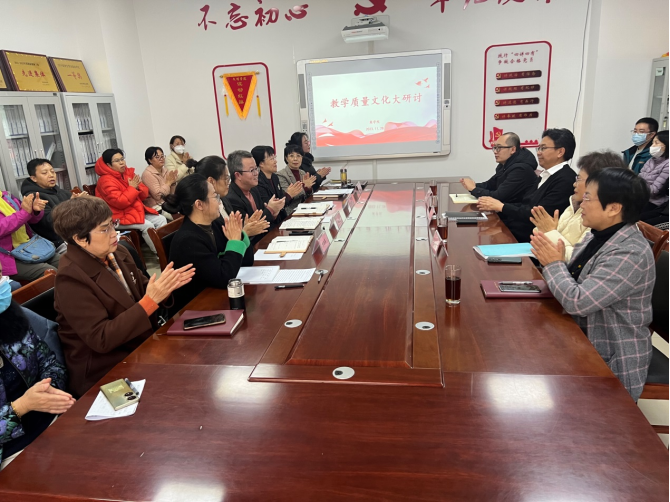 商学院院长张兰新传达了太阳集团教学审核评估工作会议精神。商学院副院长李洪维就该学院的教学质量文化相关活动进行了汇报。部分教师代表分别交流了感想。