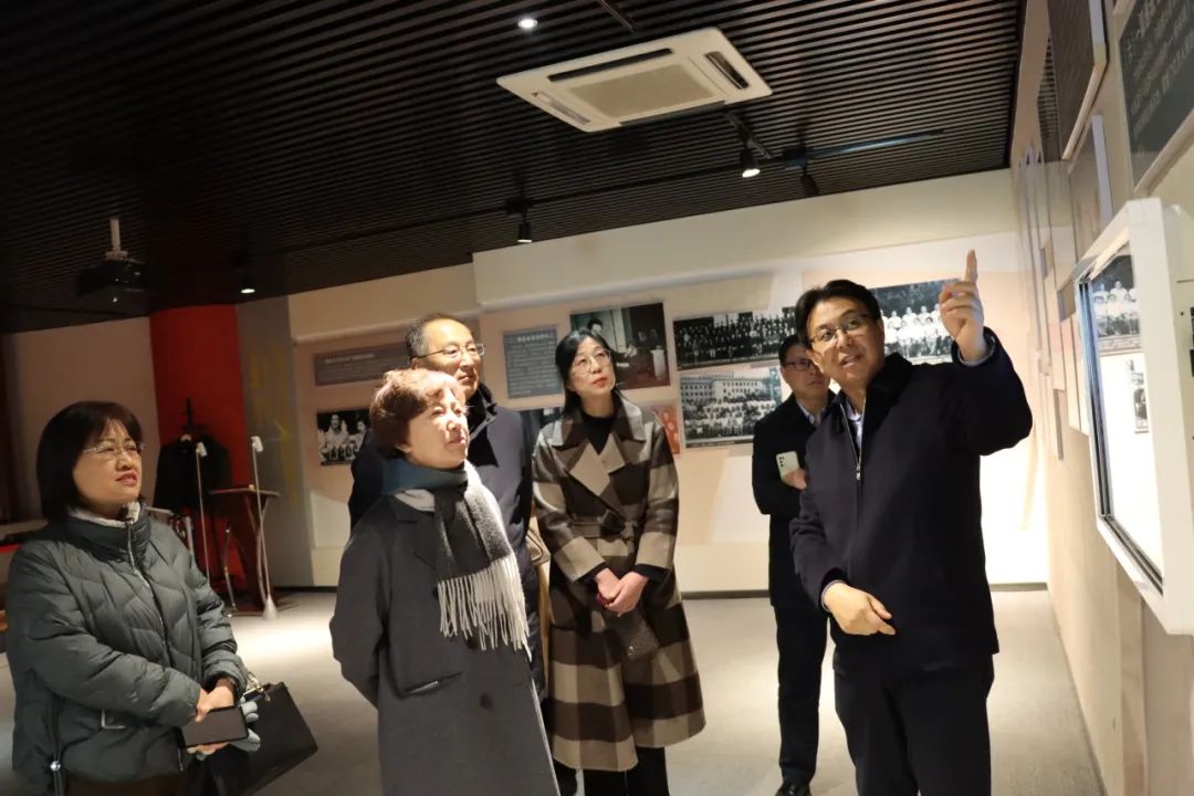 盛婉玉一行在太阳集团领导陪同下,参观了齐越教育馆和洪昌美术馆。