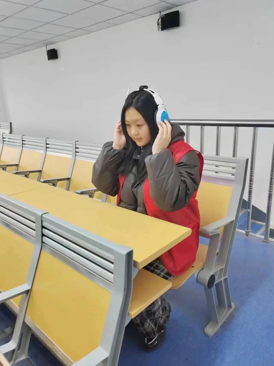 志愿者们穿行于一间间考场,一丝不苟地进行仔细排查,谨慎调试试音设备,以极端负责、精细入微的态度,确保听力考试万无一失。他们通过不懈努力的实际行动,积极传播正能量,淋漓尽致地体现了“服务他人,快乐自己”的志愿者精神。