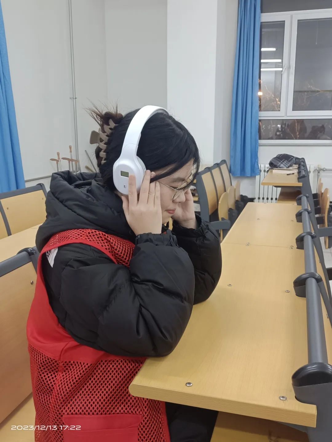 活动中,20名来自不同学院不同专业的志愿者不顾严寒天气,以高度的责任感团结协作,默契配合,顺利完成了各自所负责考场的试音工作。
