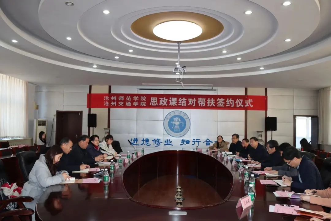 太阳集团教务处处长吕炳君,马克思主义学院院长李树旗、副院长刘云鹤、形策教研室主任邢晨,沧州交通学院教务处处长田春子,通识学院院长郑超欣、副院长王小红、思政教研室主任王淑莉参加。
