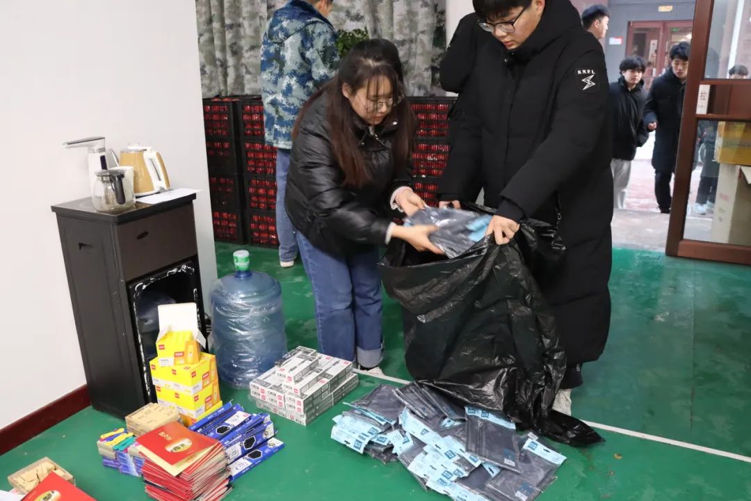 学生处的领导老师们为考研学子准备了“考研大礼包”,礼包内有学校精心准备的文具,加油卡以及寓意着心想事“橙”的橙子,老师们亲手将这些礼包送到考研学子手中,贴心提醒考生注意保暖和休息,叮嘱大家调整心态,坚定信念。