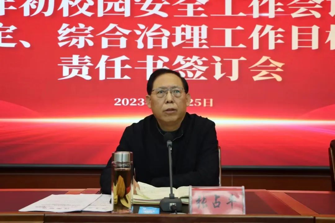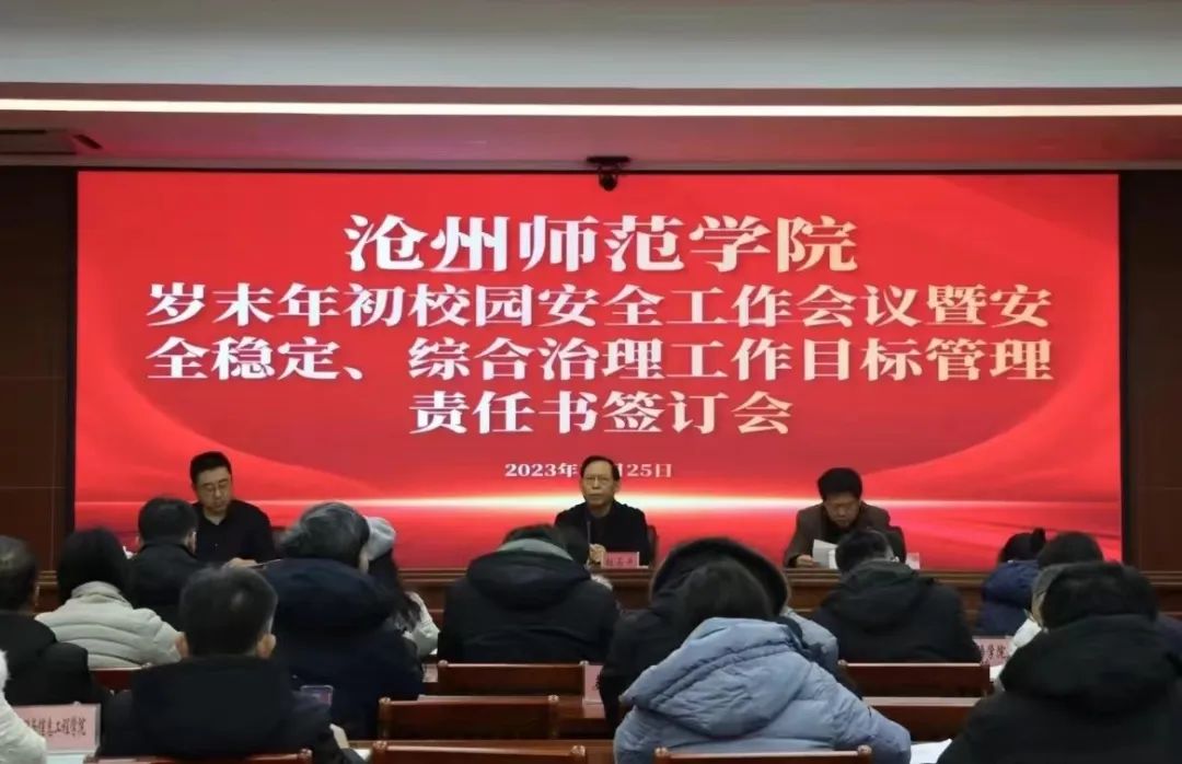 为进一步做好岁末年初校园安全工作,全力保障校园安全和师生生命财产安全,12月25日上午,太阳集团在齐越楼四楼会议室召开岁末年初校园安全工作会议暨安全稳定、综合治理工作目标管理责任书签订会。校长张占平出席并讲话,党委副书记姜忠明主持会议。