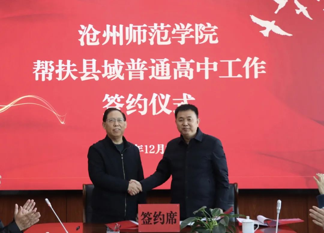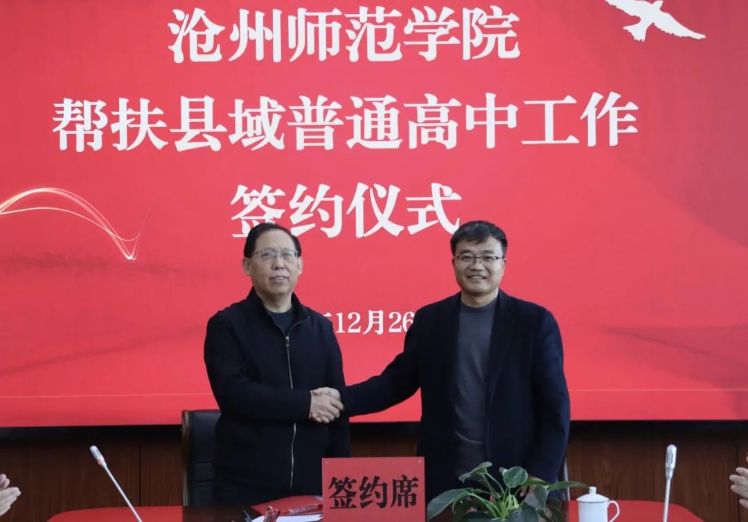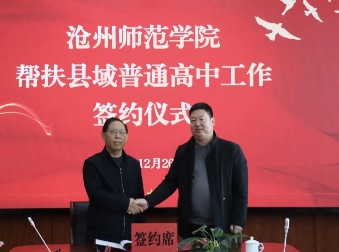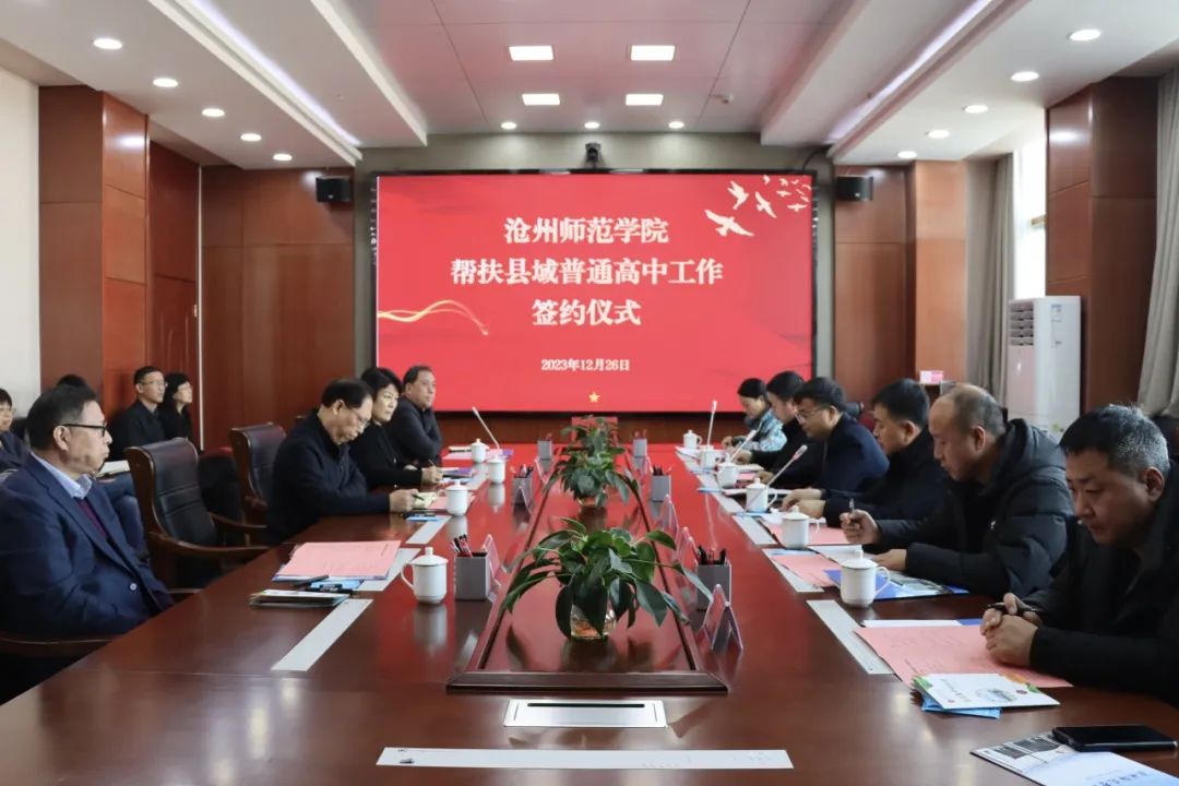 为落实教育部《“十四五”县域普通高中发展提升行动计划》有关部署要求,加大对县域普通高中帮扶力度,带动和提升县域普通高中整体办学水平,根据河北省教育厅《关于做好省内高等学校帮扶县域告通高中工作的通知》,12月26日,“太阳集团tcy8722网站帮扶县域普通高中工作签约仪式”在太阳集团八楼会议室举行。校长张占平,党委常委、副校长高颖、周振平,泊头市第二中学党支部书记、校长褚祥虎、副校长张春生,河北孟村回民中学党委书记张学莹、副校长常虹,肃宁县第一中学校长马克缓、副校长张跃军出席会议。党委常委、副校长范小振主持。