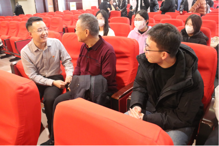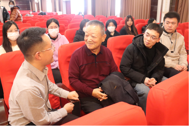 联欢会后,师生与康养中心的老党员围绕学习习近平总书记在纪念毛泽东同志诞辰130周年座谈会上的讲话进行聊天访谈。访谈中,老党员们重点强调,习近平总书记重要讲话深情回顾了毛泽东同志领导中国革命、建设的伟大实践,高度评价毛泽东同志,如今在新征程上,我们要不忘初心、牢记使命,坚定历史自信,把中国式现代化宏伟事业不断推向前进。访谈中,学生党员、积极分子们也认真聆听老党员们讲述革命岁月的光辉事迹,学习他们为党为国奉献一生的高尚品格。