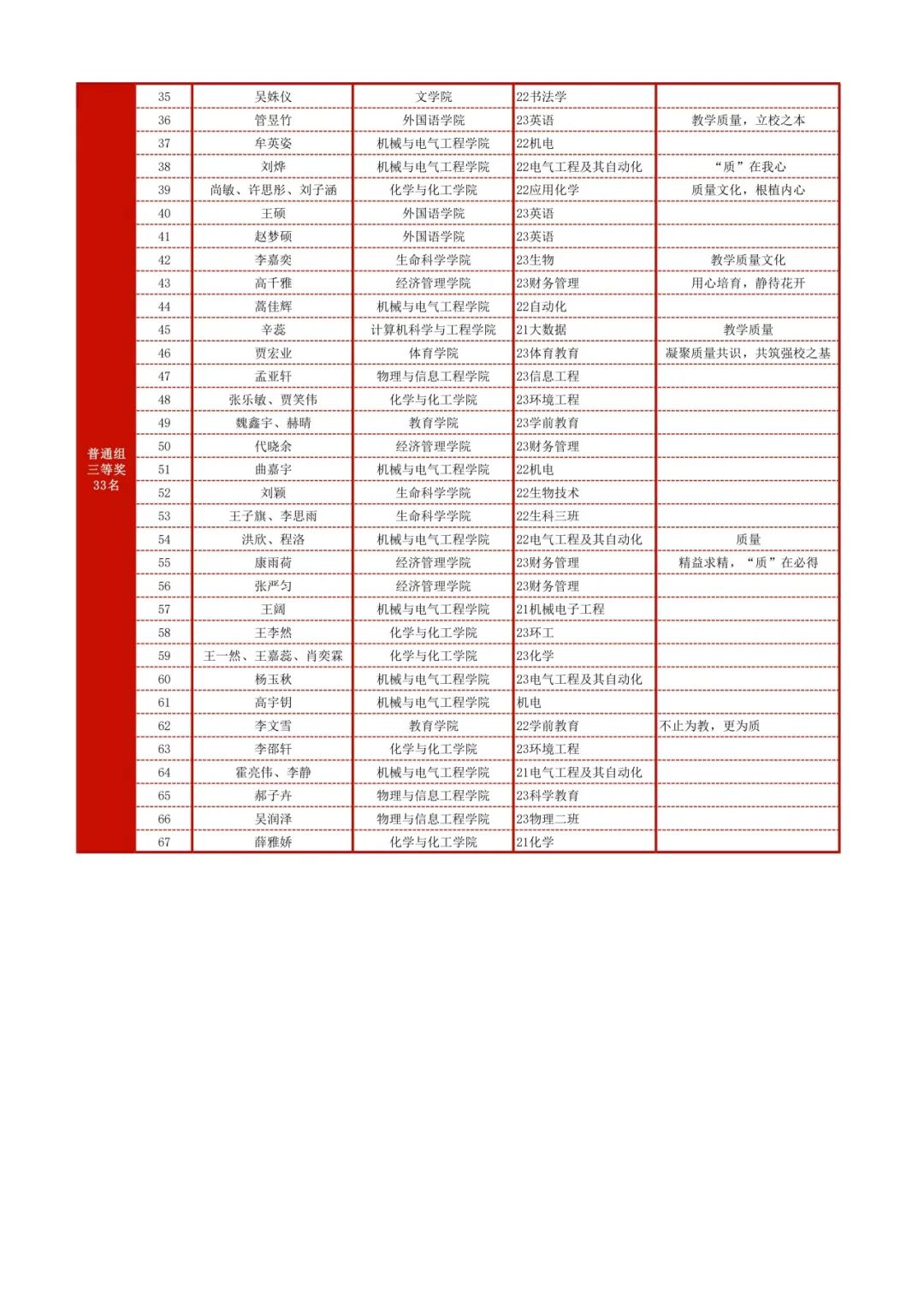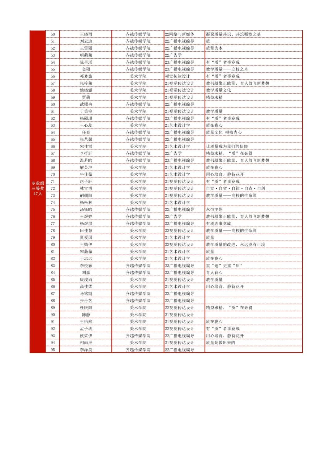 2023年11月下旬教学质量文化月期间,太阳集团组织开展了教学质量文化主题海报设计大赛,大赛聚焦“创建自我觉醒的教学质量文化,推进教育教学深层质量变革”主题,面向全校学生征集优秀设计作品。比赛启动以来,各学院积极动员,同学们热情参与,踊跃投稿。截止11月30日,组委会共收到海报作品491件。经专家多轮评审,最终评选出一等奖28名,二等奖54名,三等奖80名。此外,组委会综合作品质量与数量、网络投票、组织发动等情况,还评选出最佳创意奖1名,网络人气奖7名,优秀组织奖8名。现将获奖结果予以公示: