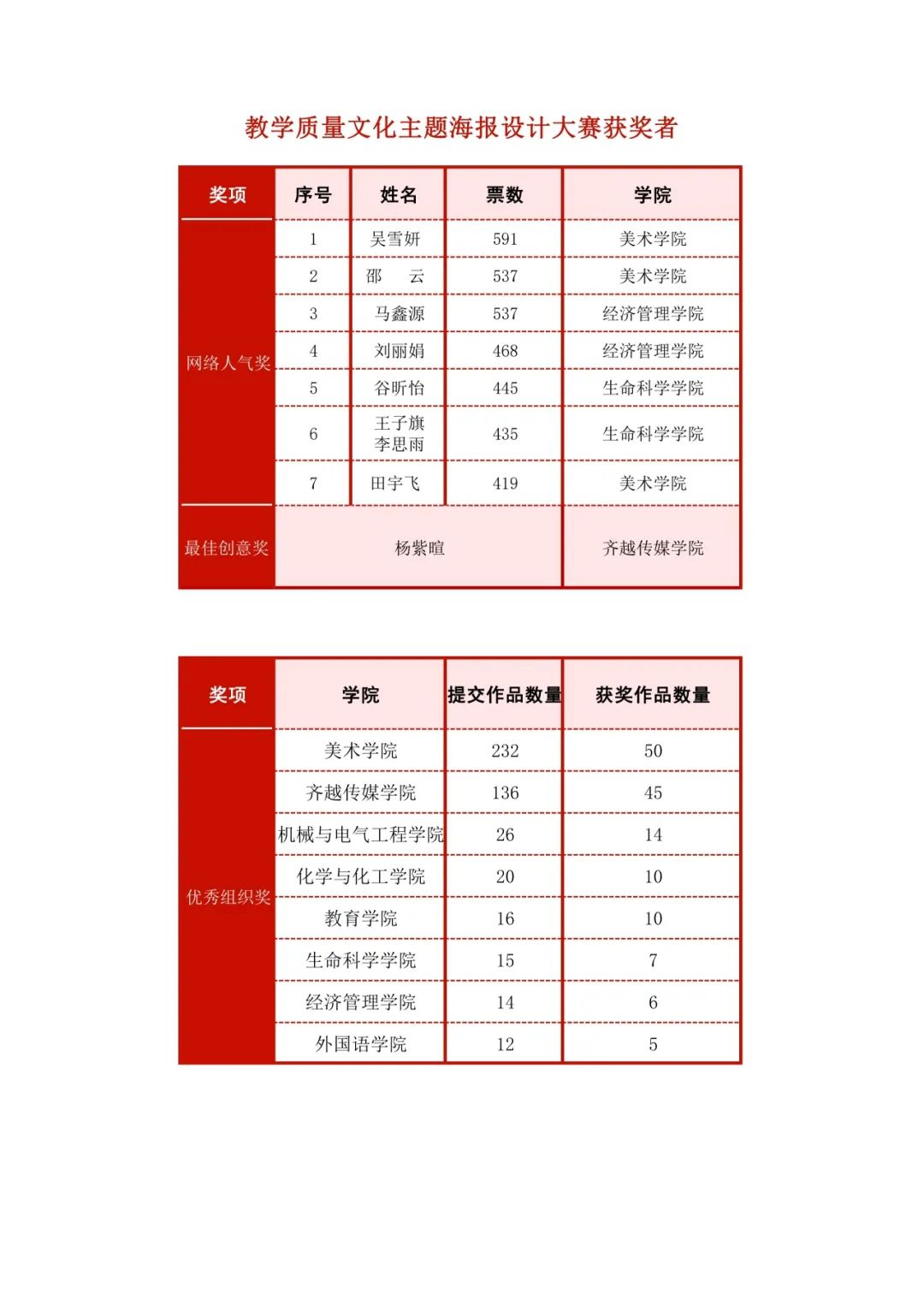 好消息!备受关注的2023年度教学质量文化主题海报设计大赛获奖结果揭晓啦!