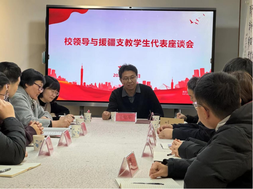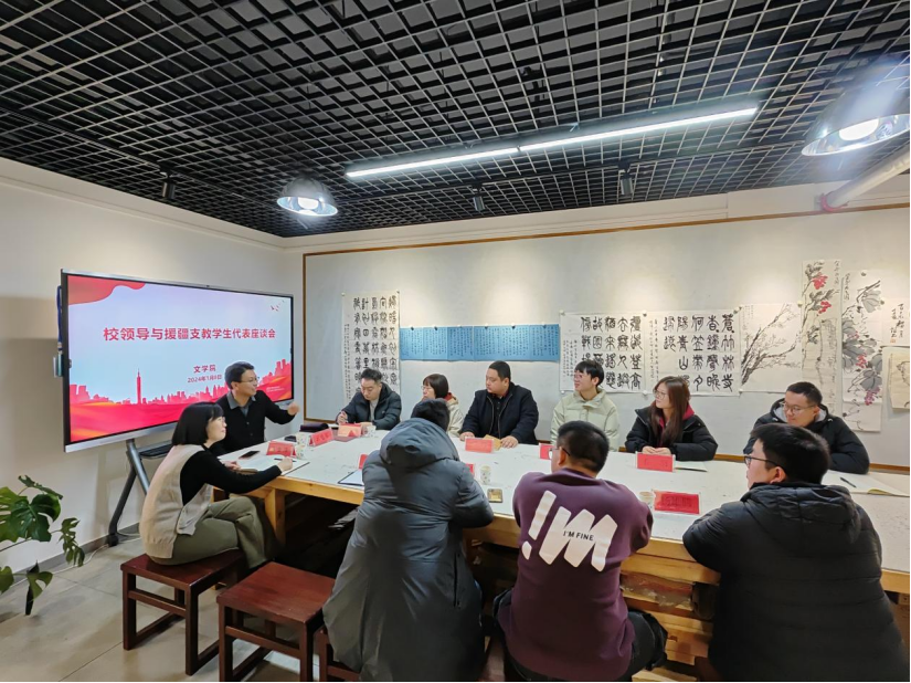 文学院全体班子成员、援疆学生辅导员参加座谈会。