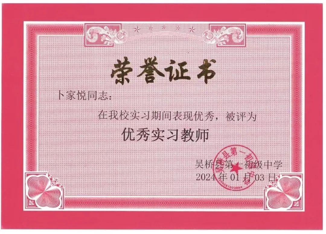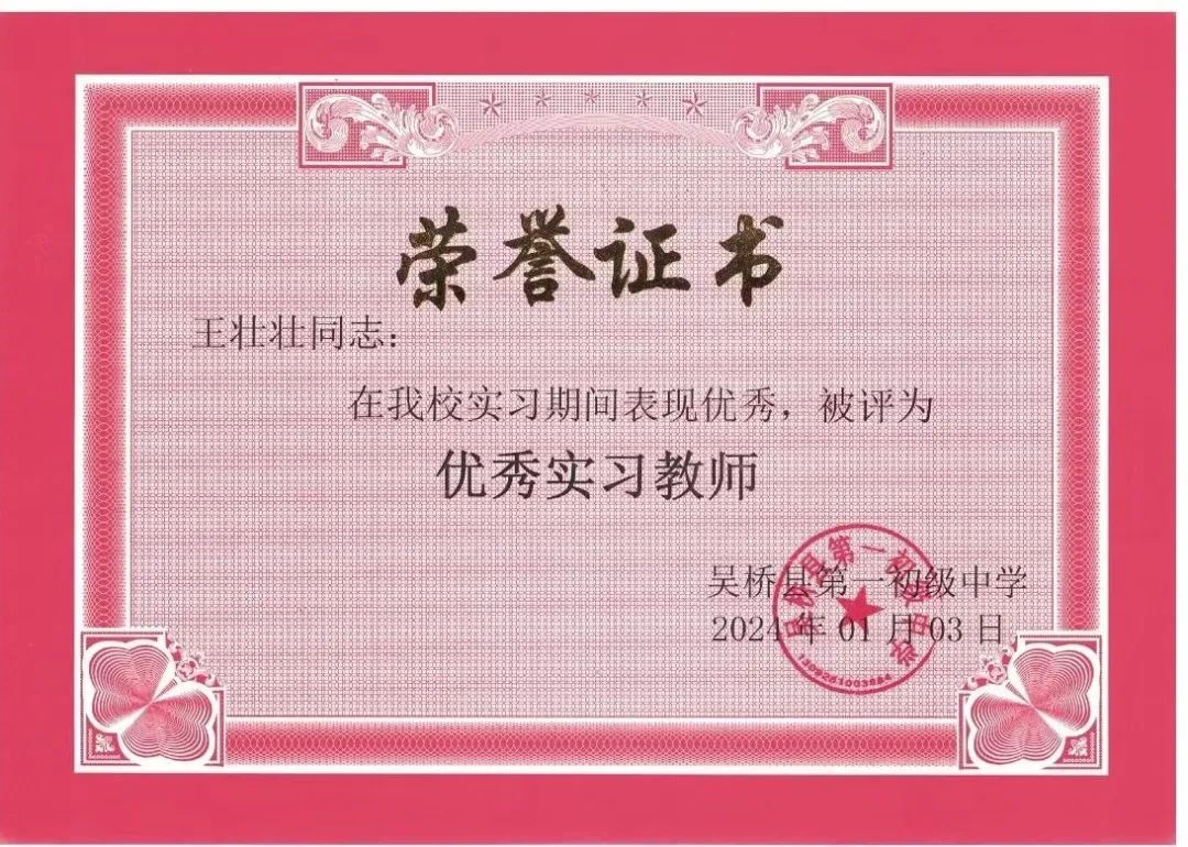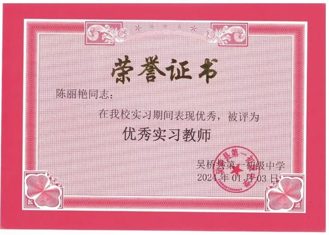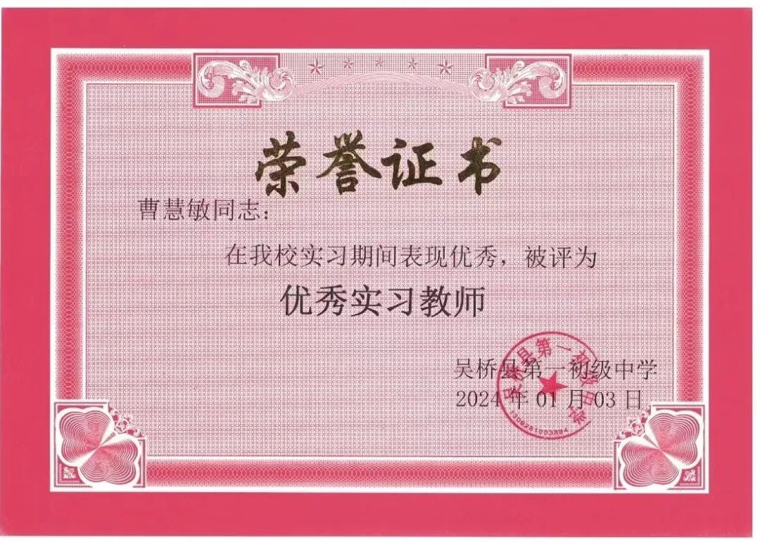 1月7日,吴桥县第一初级中学校长李世芳、副校长周霞向太阳集团专门寄达一封表扬信和八张“优秀实习生”荣誉证书,对太阳集团派驻的全体八名实习生给以表扬。