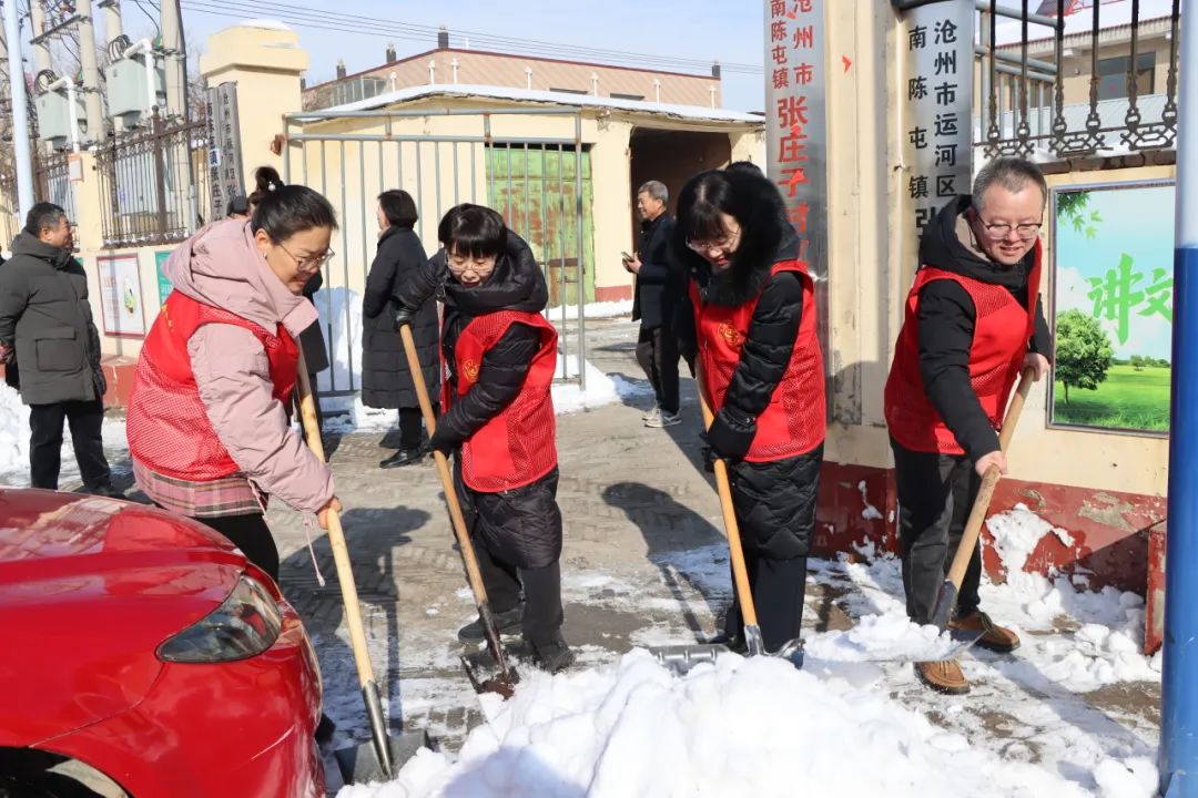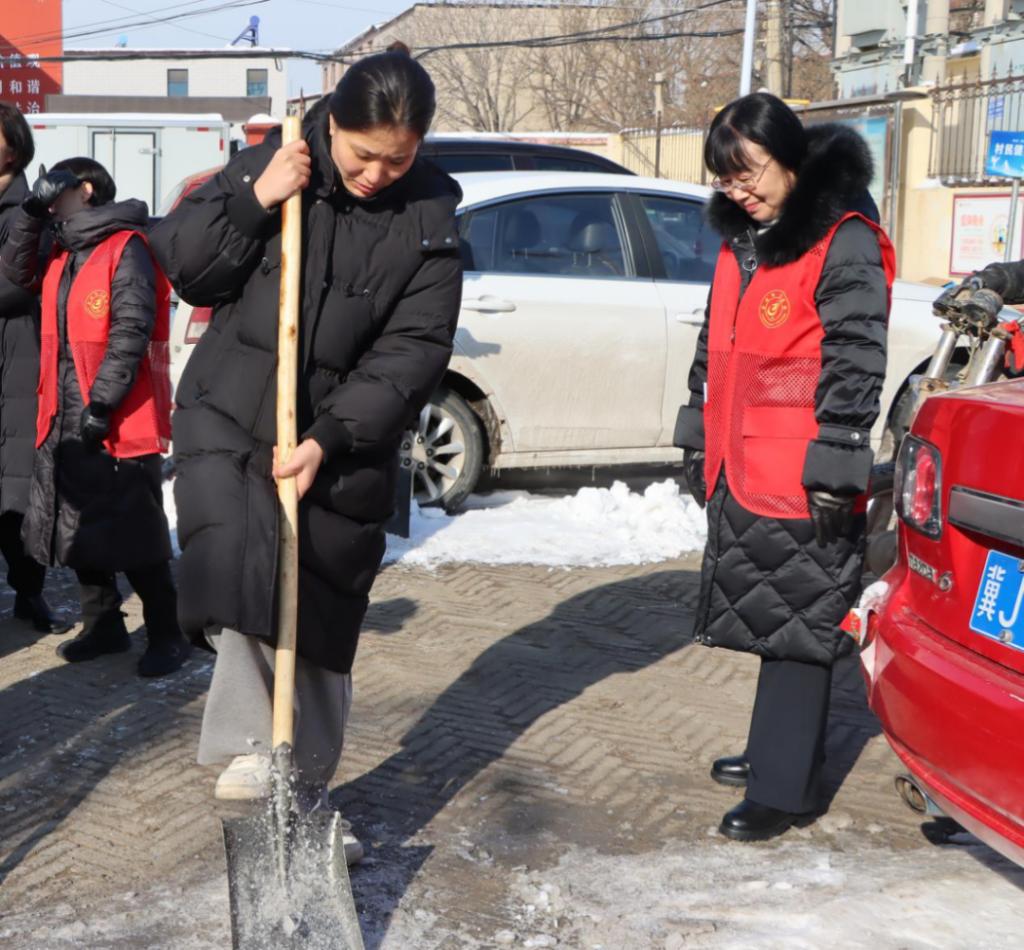 宣讲活动后,志愿者们认真清理了村内道路积雪,开展了爱国卫生运动。