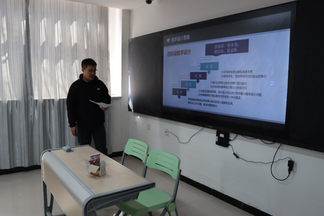 面对专家与同行,青年老师们有的虽稍显稚嫩,但举手投足中可见教师风范;有的则毫不怯场,准备充分,挥洒自如。他们分别就自己所负责的专业课与公共课,按照评审要求,进行了详细生动的说课展示,从课程在人才培养方案中的地位、课程目标、课程内容、教学理念、教学教法、具体教学实施设想、课程评价等方面进行了深入具体阐述,展现了对于各自课程的宏观把握、教学思路和设计特色。
