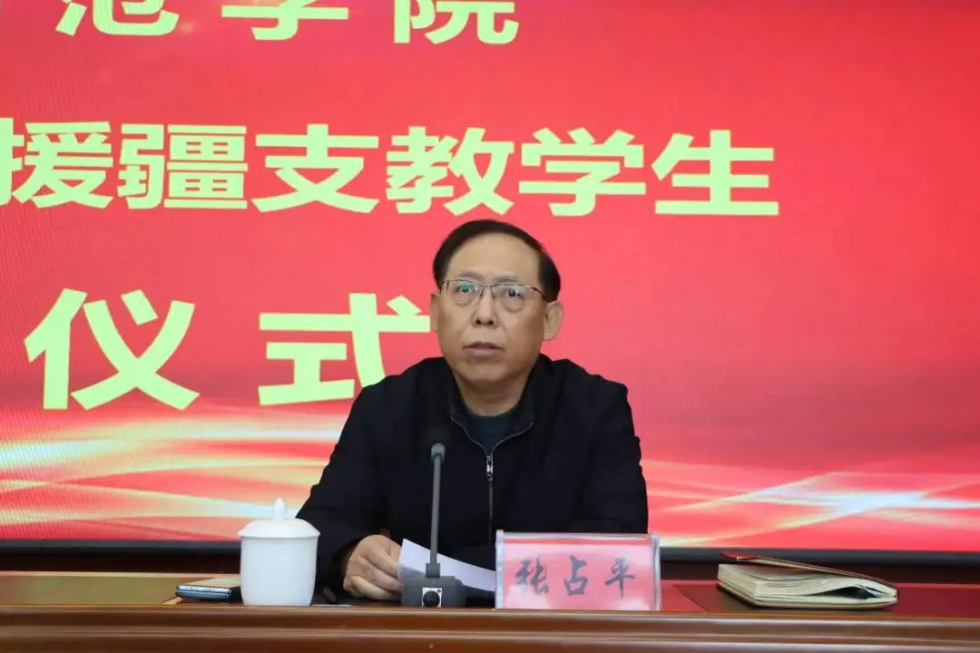 张占平代表学校对援疆学子提出五点希望:一是要坚定信念,实现梦想。要牢记习近平总书记嘱托:“同人民一道拼搏、同祖国一道前进,服务人民、奉献祖国,是当代中国青年的正确方向”。同学们作为新时期的大学生,是肩负民族复兴大任的时代新人,大家要在实现中国梦的生动实践中放飞青春梦想,实现人生价值,要时刻保持积极进取的奋斗姿态,为实现中国特色社会主义共同理想贡献青春力量;二是要调整心态,转换角色。要尽快适应支教学校的教学环境,从心理、认知、思想、行为等各个方面接受社会、学校、学生乃至家长对我们的期待。要把这次教学实践视为人生旅途的一次磨砺,视为通向上岗就业路途的桥梁,在实践教学过程中全面检查、巩固和运用所学的专业知识和基本技能,讲付出、比创新,坚守初心,勇于追梦;三是要遵纪守法,为校争光。要以对自己、对学校、对支教学校的高度责任感为基石,坚定不移地强化责任意识、大局意识,以饱满的热情和坚定的决心,圆满完成好每一项工作任务,捍卫学校的荣誉与尊严,让每一份努力都化为学校的辉煌与骄傲;四是要互相尊重,团结奋进。要主动加强与各族人民的沟通交流,深入了解当地文化传统、风俗习惯,努力培养和各族人民的深厚感情,推动树立休戚与共、荣辱与共、生死与共、命运与共的共同体理念,不断铸牢中华民族共同体意识,做维护民族团结的践行者;五是要注意安全,保护自己。彼此之间要多沟通、多关心、多帮助,加强自我管理,服从安排,听从指挥。从人身、交友、物品、交通、用电到饮食各个方面都要增强安全意识,让家长安心、学校安心。