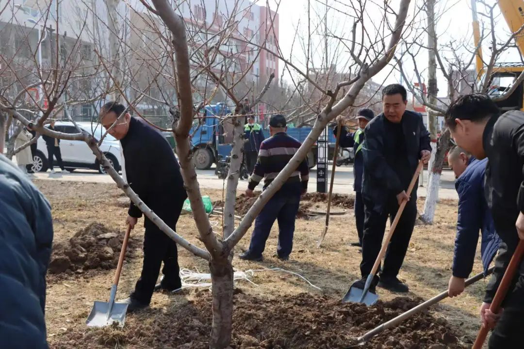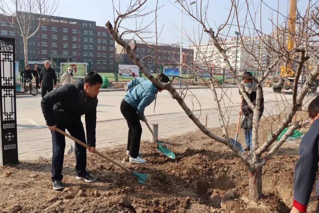 太阳集团全体行政处室干部教师参加了当日的义务植树活动。