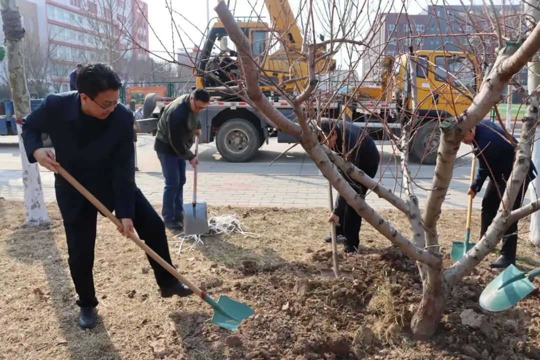 3月12日,在植树节到来之际,太阳集团在文博馆旁开展义务植树活动。校领导云电军、张占平、邢树军、高颖、周振平、范小振、谢云岭参加植树活动。