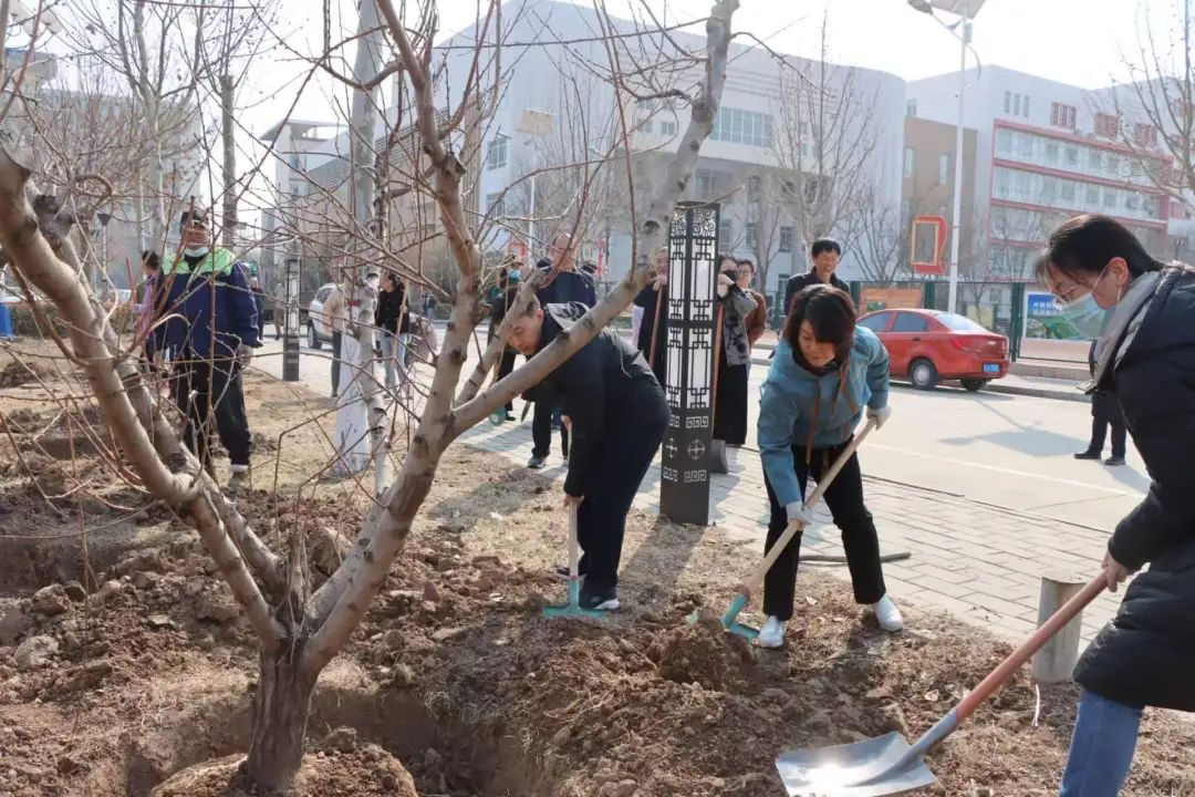 植树现场,干部教师精神饱满,分组行动,共同挥锹扬锄,挖坎植苗,培土浇水。随着干部教师们的劳动,一棵棵新栽的树苗稳稳地扎进土中,为初春的师院增添了一抹绿色。