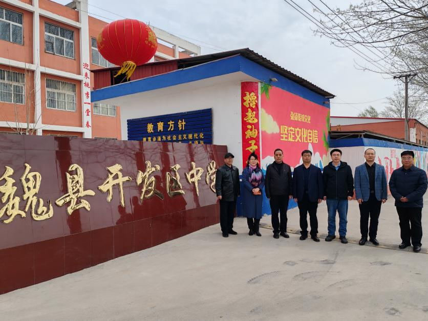 范小振一行先后来到魏县第八中学、魏县开发区中学等地,现场参观考察了学校教学条件、办公环境、校园文化、教师宿舍、餐厅等场所,并与校长及教师代表进行了座谈交流。随后在魏县教育局与教育局相关领导进行了深入探讨交流。